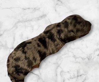 Suki is a beautiful black and silver Merle. She weighs 13 lbs. Her happy forever home with her guardian family let’s her spend her days with her realtor mom hanging in the office or going to showings. Her manners are impeccable and she impresses folks wherever she goes between her striking good looks and her pleasing personality. This will be her final litter!