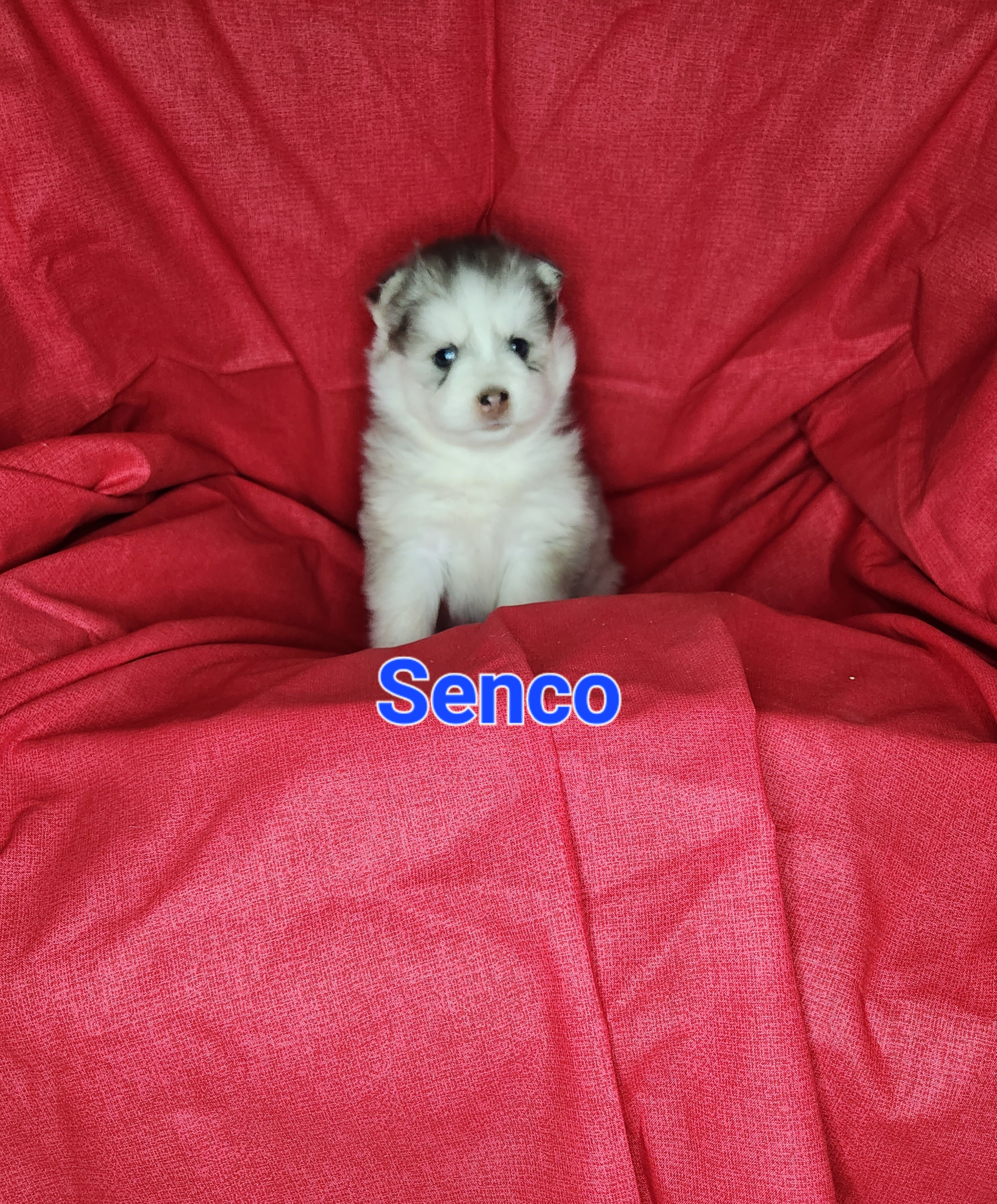 Gator is a breathtaking black-and-white Pomsky with a striking Pomsky mask and flawless conformation. He’s not just a stunning sight—he’s the total package. With an incredibly sweet personality, he’s a true little love bug who just wants to be by your side at all times.