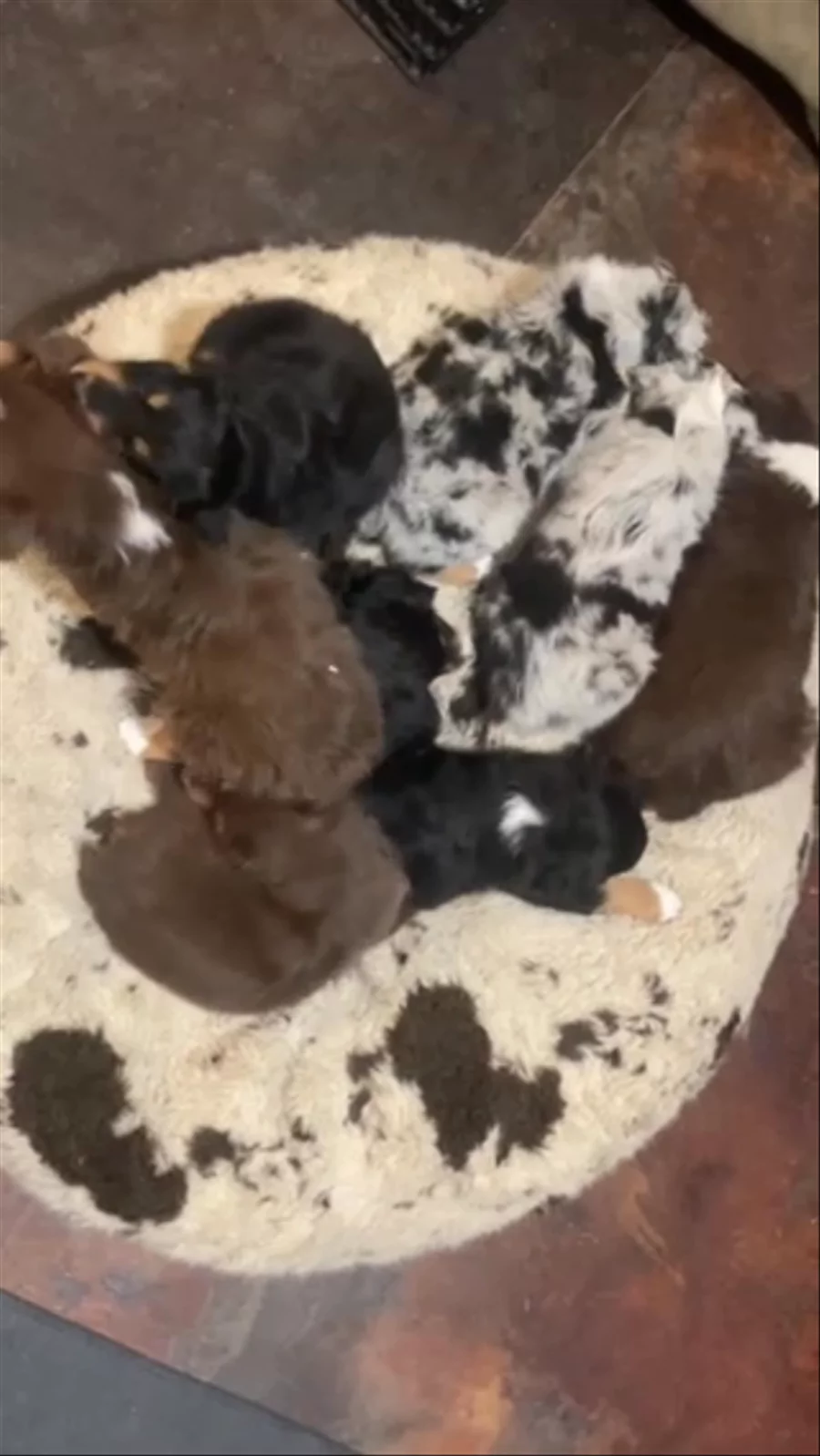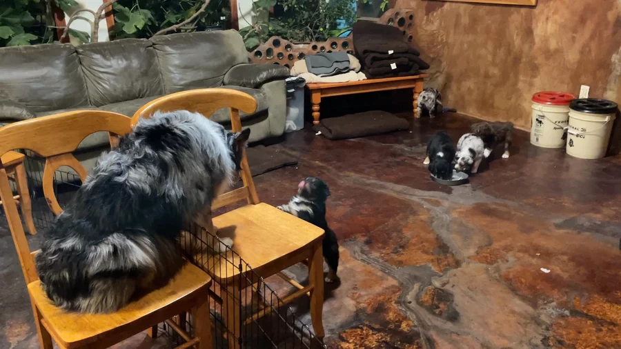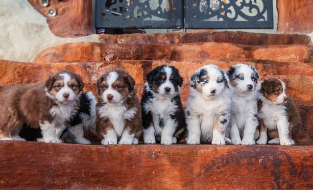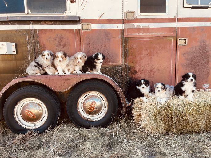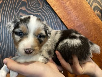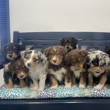 Our puppies include red merle, blue merle, black tri-color, and red tri-color. Colors will vary depending on the parent dogs.