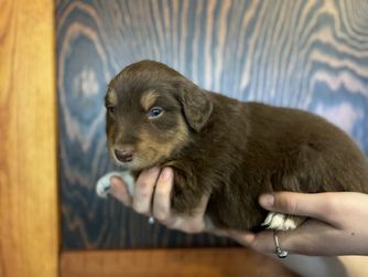 I'm Jessie S., the breeder behind Magpie Springs Australian Shepherds located in Dillon, MT. We are a couple of folks with two amazing dogs, Kiva and Summit. Both dogs are family dogs that enjoy the adventures that mountain life allows: creek swimming, mountain hiking, camping, backpacking. Both dogs have clear genetic panels. Mom has good hips and elbows. Dad had not been tested.
