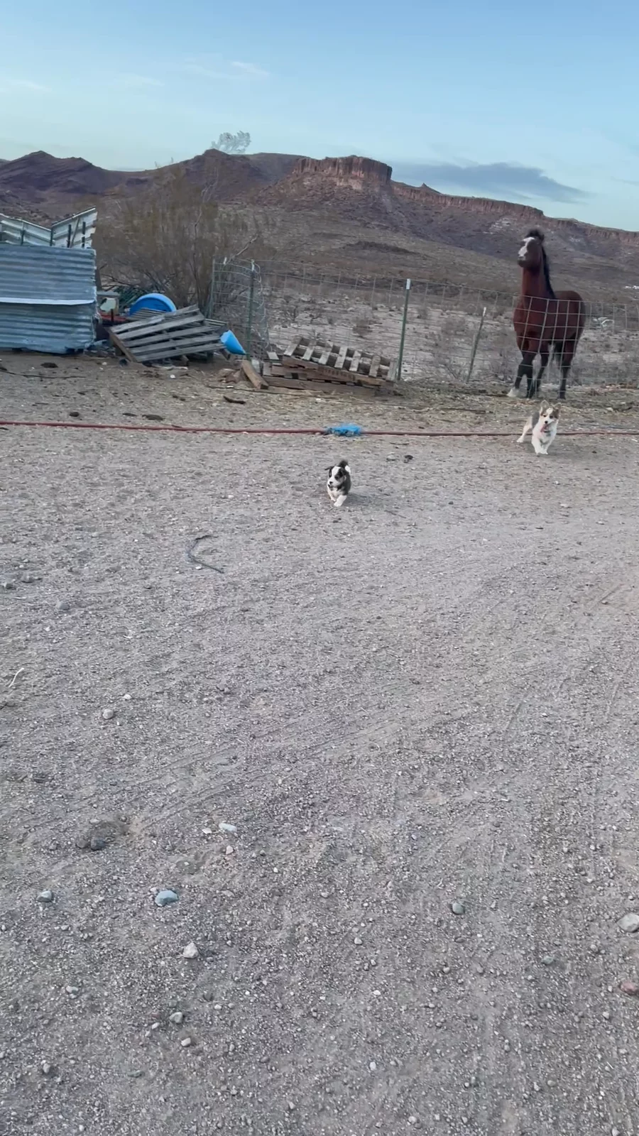 The girls go to venture outside of the yard with the big dogs night.
