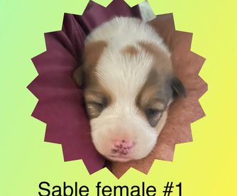Our puppies include sable and white, black and tan, brindle and white, and blue merle and white. Colors will vary depending on the parent dogs.