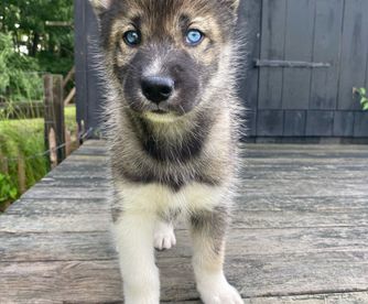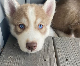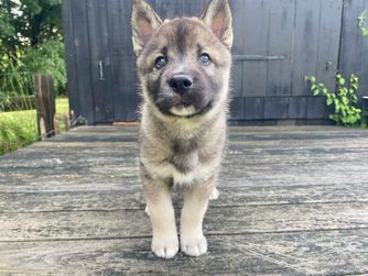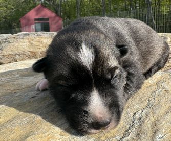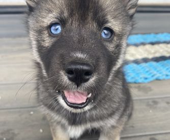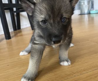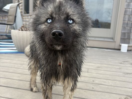 Summit is a wooly coat Siberian husky with two bright blue eyes. Small in size but don’t let that fool you from him keeping up with the pack ! He loves to run, swim and hunt. He loves and eat and his favorite food is steak.