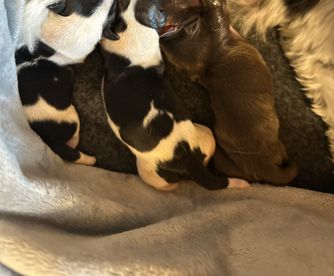 Our puppies include liver, gold, red, liver and white, gold and white, black gold and white, and black and white. Colors will vary depending on the parent dogs.