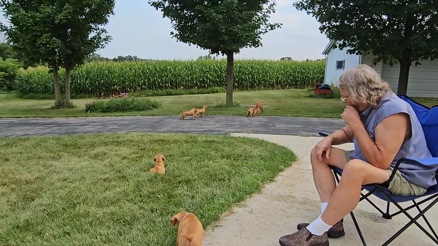We turned 3 weeks old yesterday, and let us tell ya—life is getting seriously exciting. It all started when our human parents left us chilling in the whelping box while they went to play with sticks and dirt outside (they call it “yard work”… weird hobbies, honestly). Anyway, we saw our moment... and ESCAPED. 💥🎉 Hide-and-seek? Mastered it. Humans? Totally baffled.
