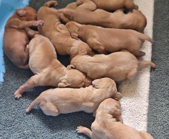 Our puppies are golden rust. Colors will vary depending on the parent dogs.