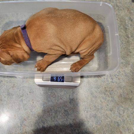 Today marks four weeks since our little bundles of fluff wiggled into the world—and just look at them now! 💪 They’ve officially 𝗱𝗼𝘂𝗯𝗹𝗲𝗱 their weight since Week 2 (see scale for proof—someone’s been enjoying mealtime 🍽️).