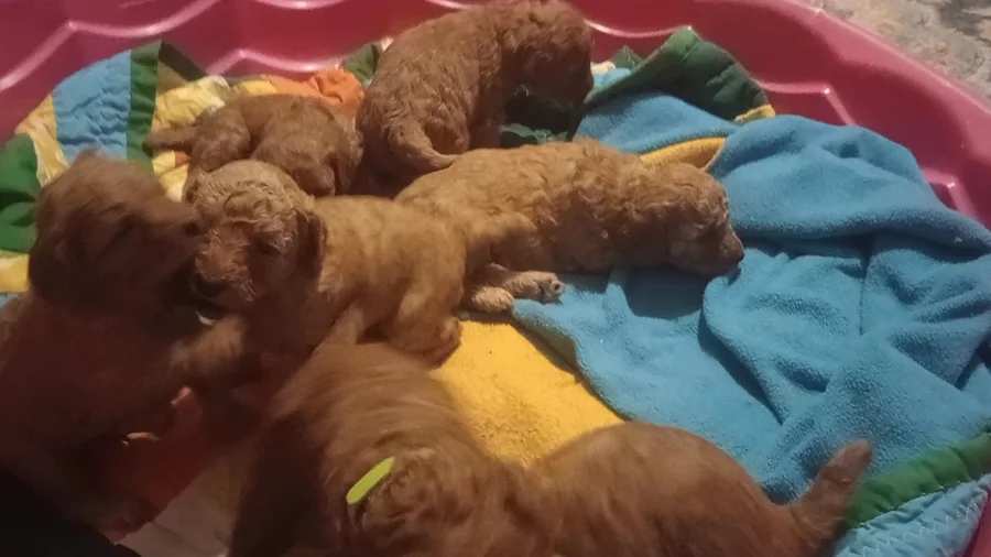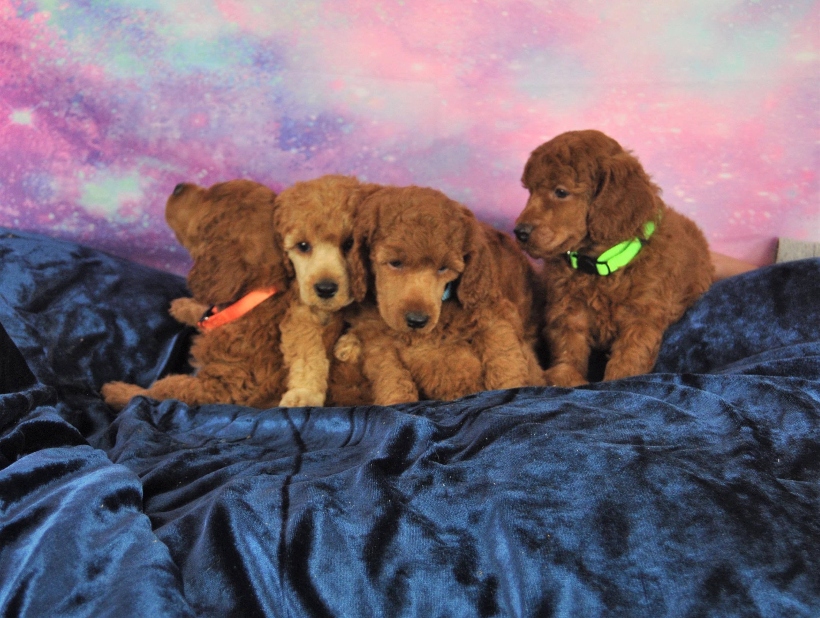 Our puppies include apricot and red. Colors will vary depending on the parent dogs.