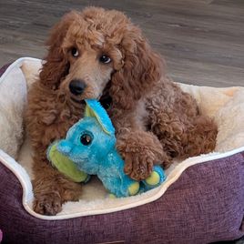 We lost our 17.5 yo red toy in December. I was convinced that I couldn’t possibly love another pup. But I missed having a poodle around. I found Laura and her beautiful pups! Laura was great at providing resources! We met halfway to pick up our beautiful pup and couldn’t be happier!!