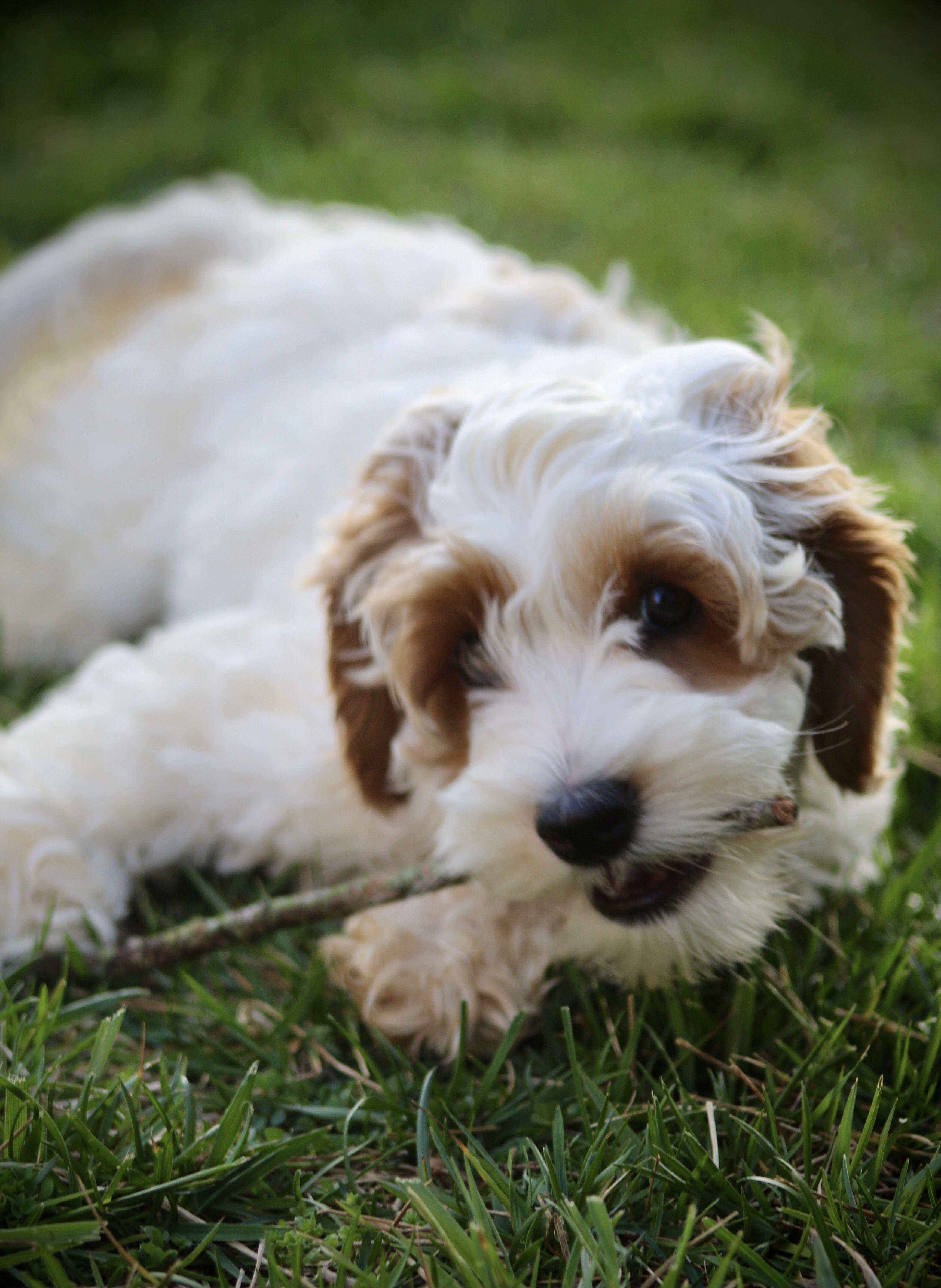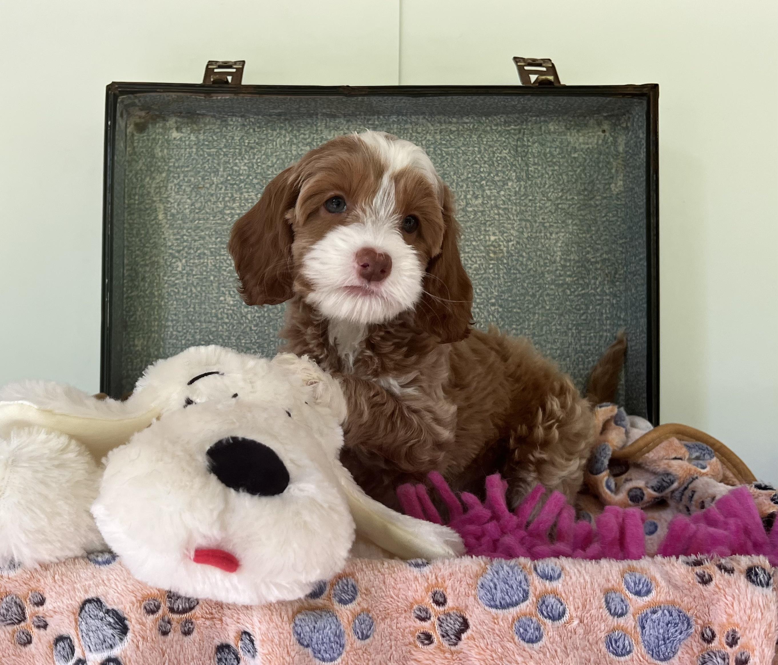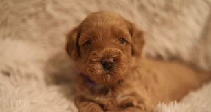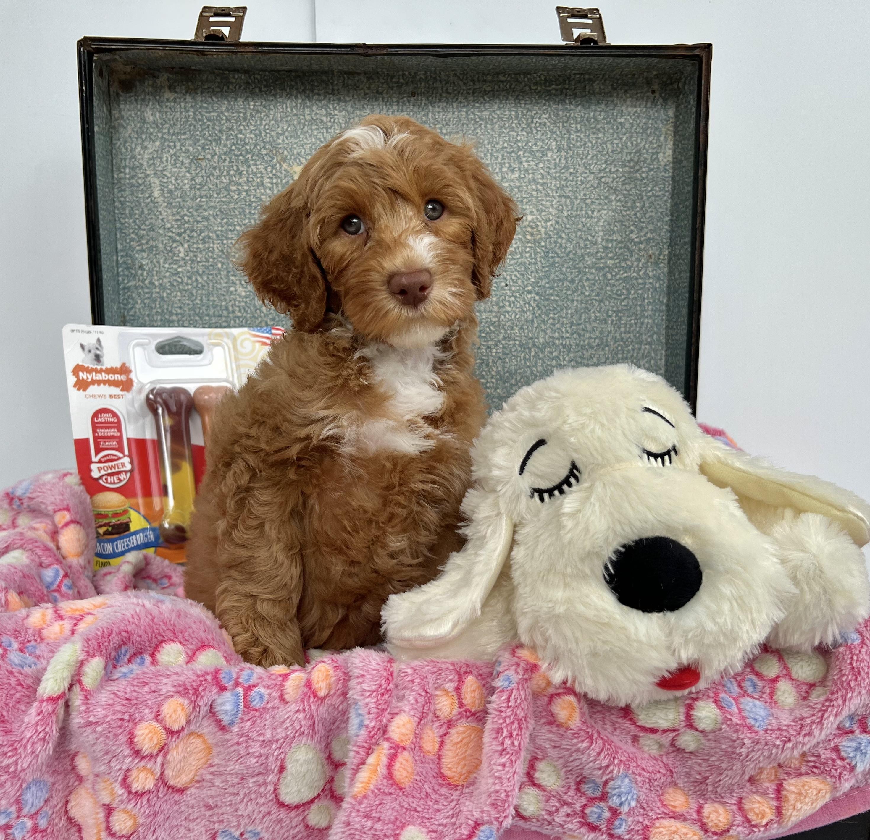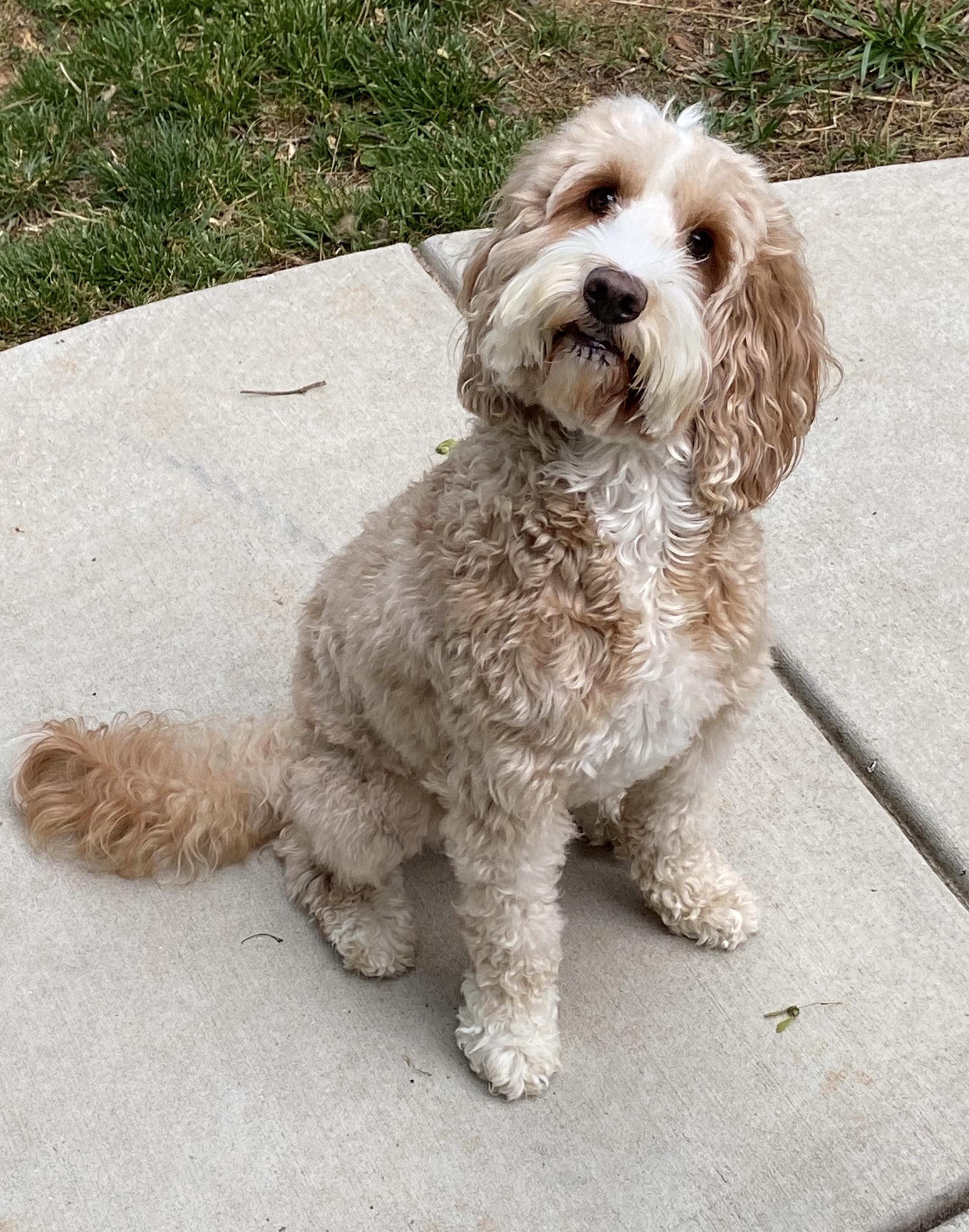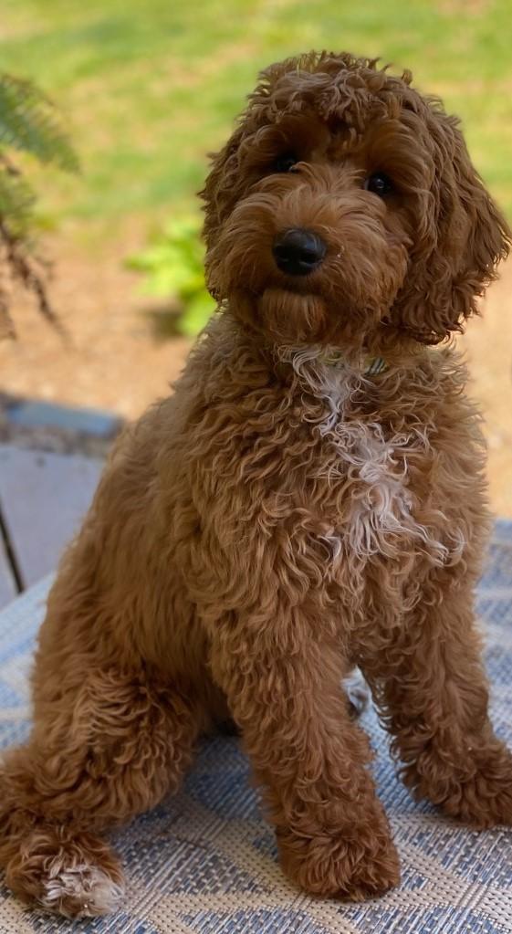 Autumn is a wavy Apricot and weights 20 lbs. She has a sweet temperament and loves to play with the family. She is super smart and will do anything for a treat. Autumn lives in our home and receives lots of love and care.