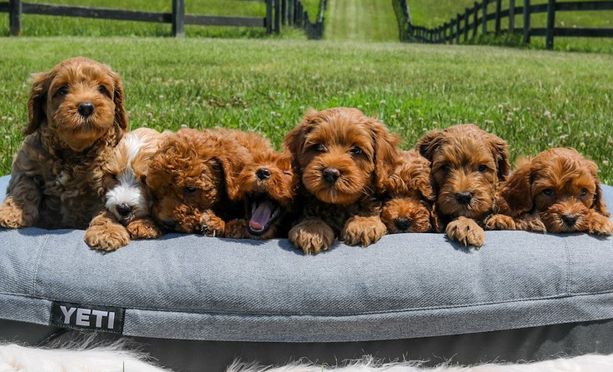 Our puppies include caramel, red, apricot, cream, and tri-color. Colors will vary depending on the parent dogs.