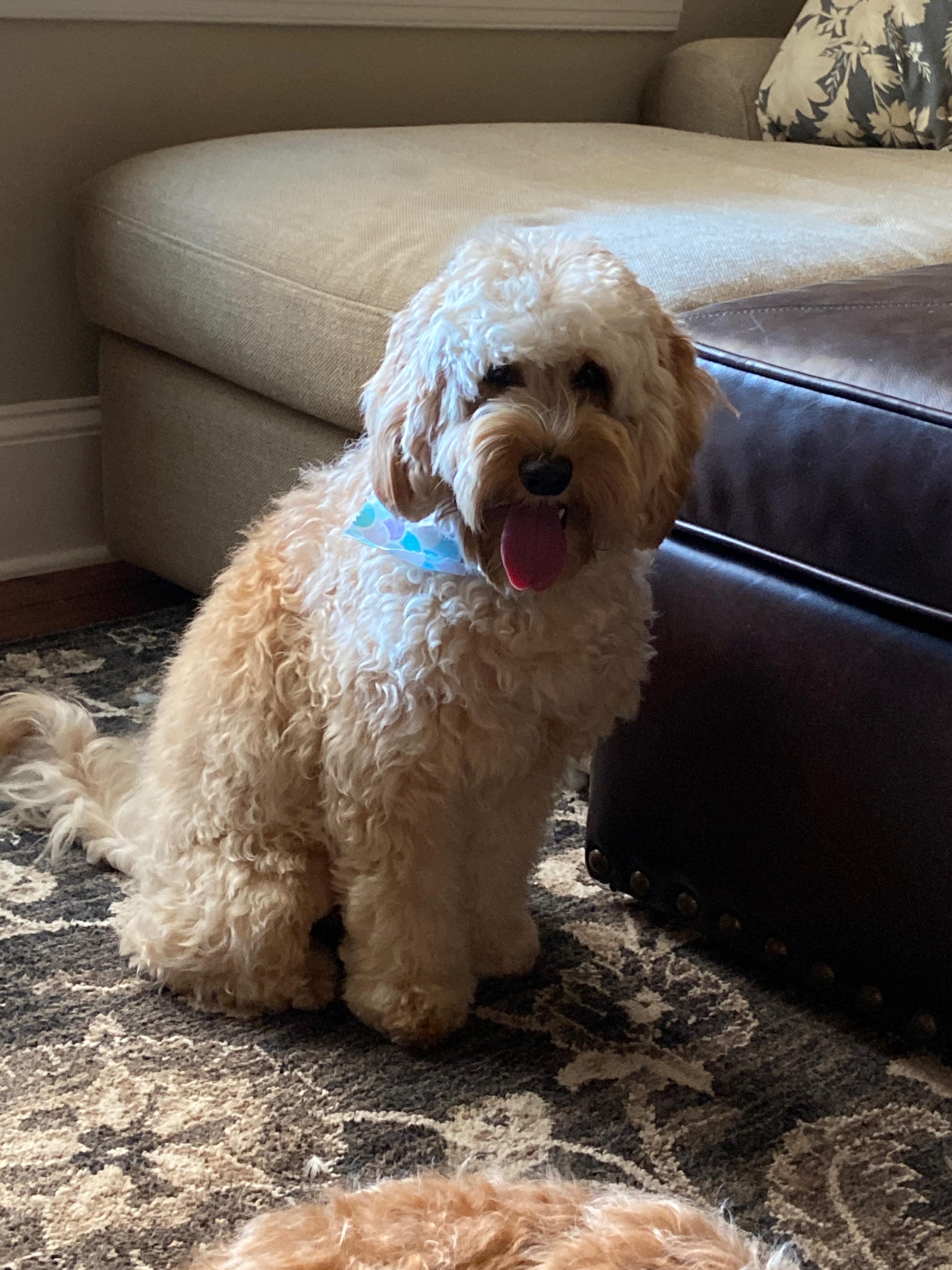 Scarlett is a female Australian Labradoodle. Carefully selected as a great representative of her breed, Marc and Denise decided to make her part of their program. Marc and Denise has passed Good Dog’s screening process, which involved a review of their breeding practices, environment, and the mental and physical health of their dogs.