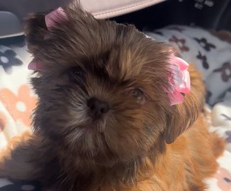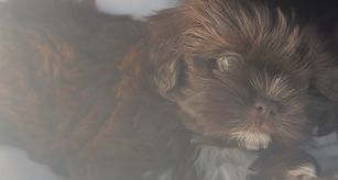 Puppies up to date on vaccinations and seen and health screened by veterinarians. They are pee pad trained before they go to their new homes and raised with a lot of love and guidance. Both parents are extremely beautiful, their mom comes from a champion bloodline from Russia and father is a liver boy who’s mother is a beautiful blue Shitzu. They are our family .