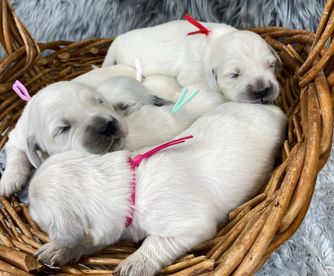 Our puppies are light golden. Colors will vary depending on the parent dogs.