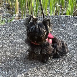 Teagan is a female Yorkshire Terrier. Carefully selected as a great representative of her breed, Aly decided to make her part of their program. Aly has passed Good Dog’s screening process, which involved a review of their breeding practices, environment, and the mental and physical health of their dogs.