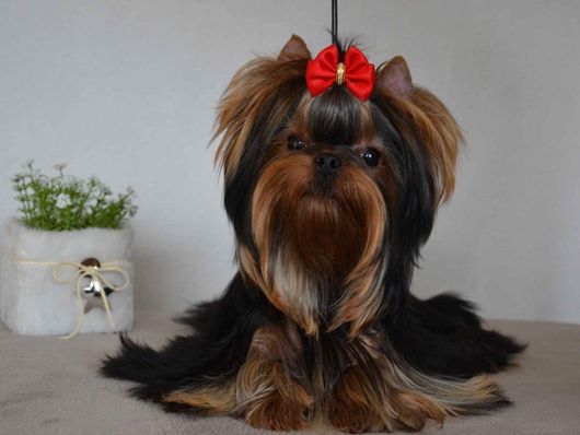 Julie is a female Yorkshire Terrier. Carefully selected as a great representative of her breed, Aly decided to make her part of their program. Aly has passed Good Dog’s screening process, which involved a review of their breeding practices, environment, and the mental and physical health of their dogs.