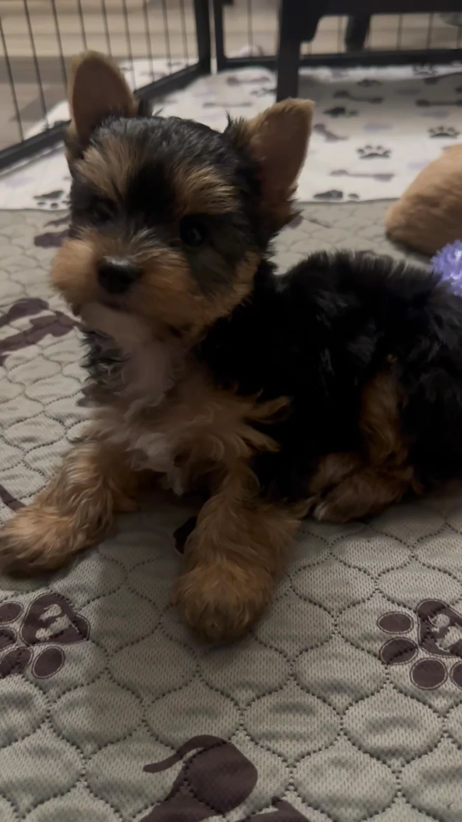 Nova is an almost all black Yorkshire terrier she has a hue of brown on her legs and a small white spot on her chin. She is so sweet and is an amazing nurturing mama!! She loves to play outside and fetch a ball, she is smart and loving! she is CKC registered