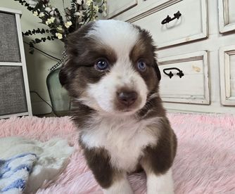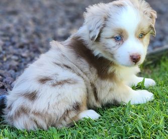 Our Miniature American Shepherd puppies include red tri-color, black tri, red merle, and blue merle. Miniature Australian Shepherd puppies include black & white, blue merle, black tri, red merle, red, and black. Colors will vary depending on the parent dogs.