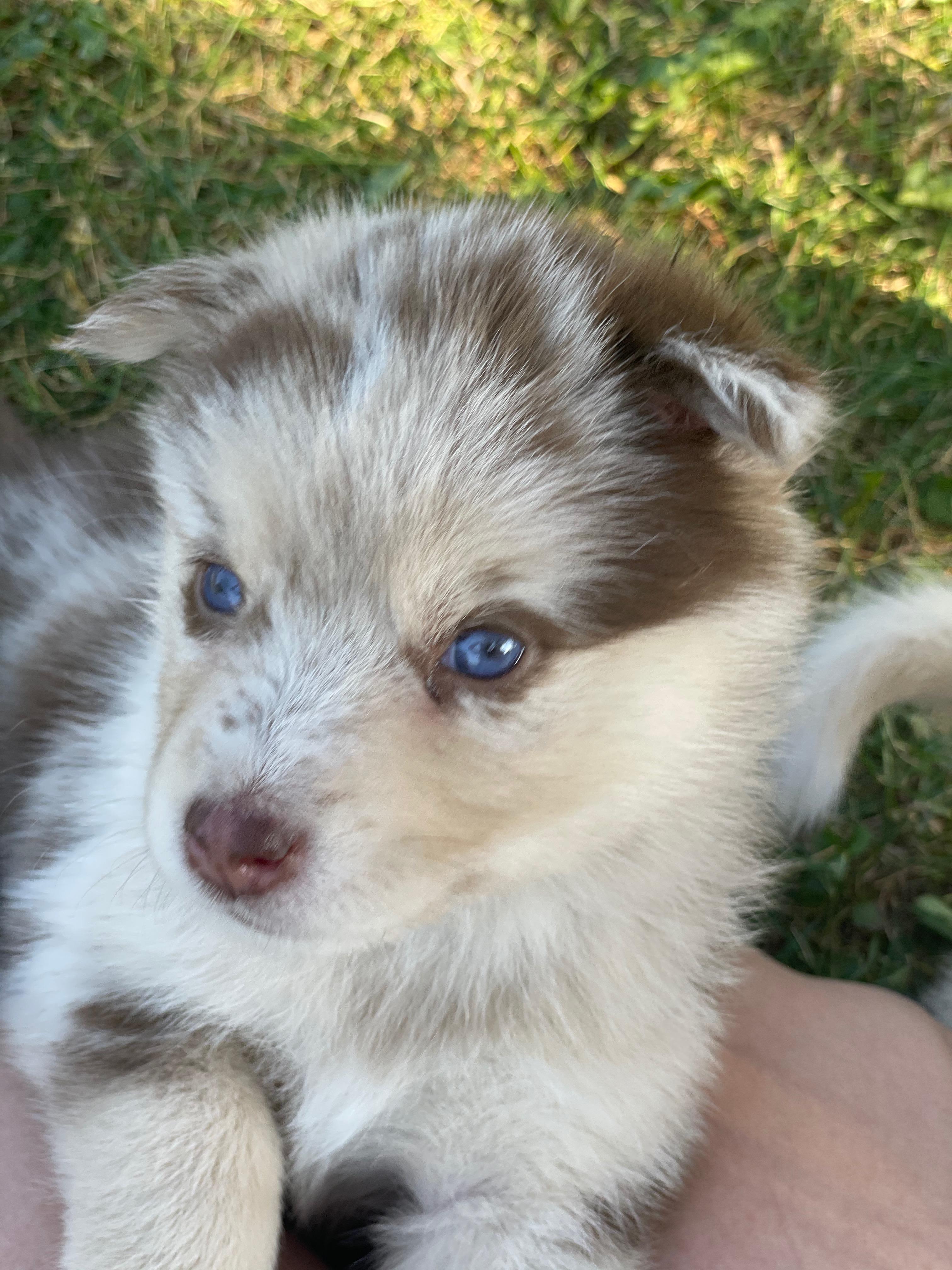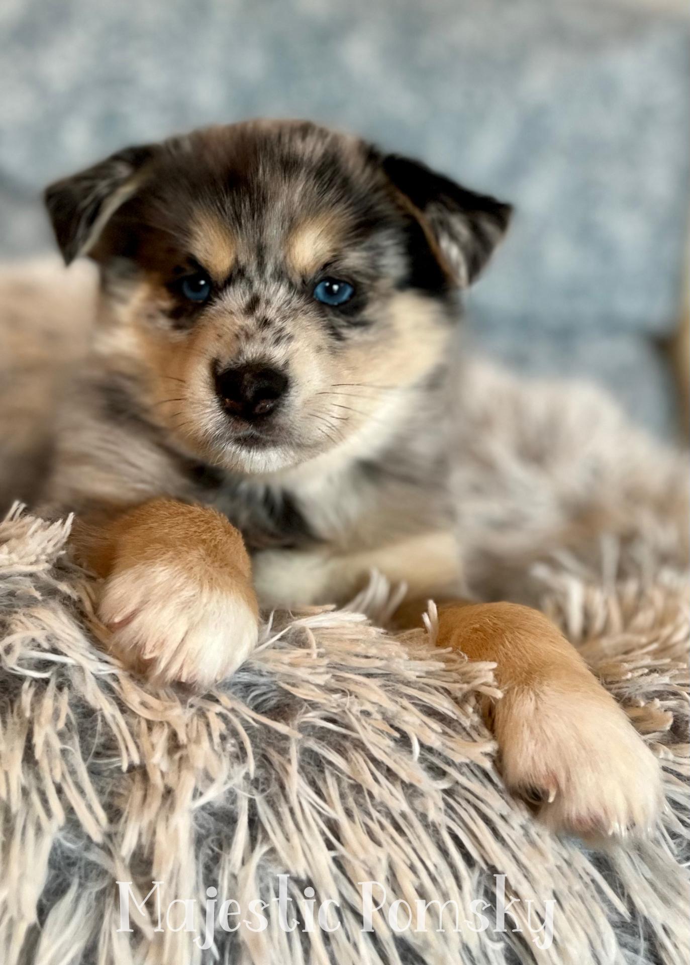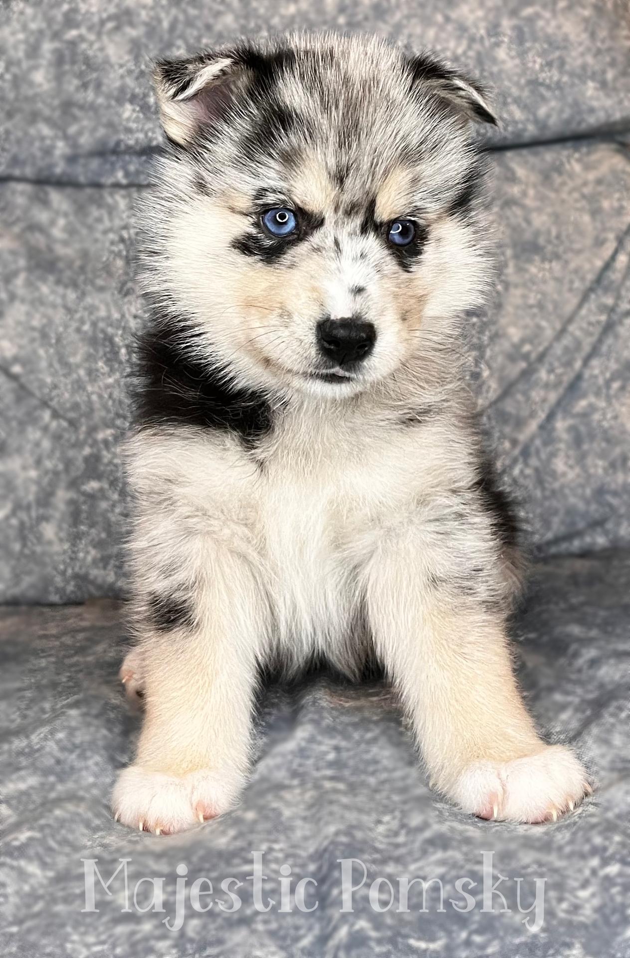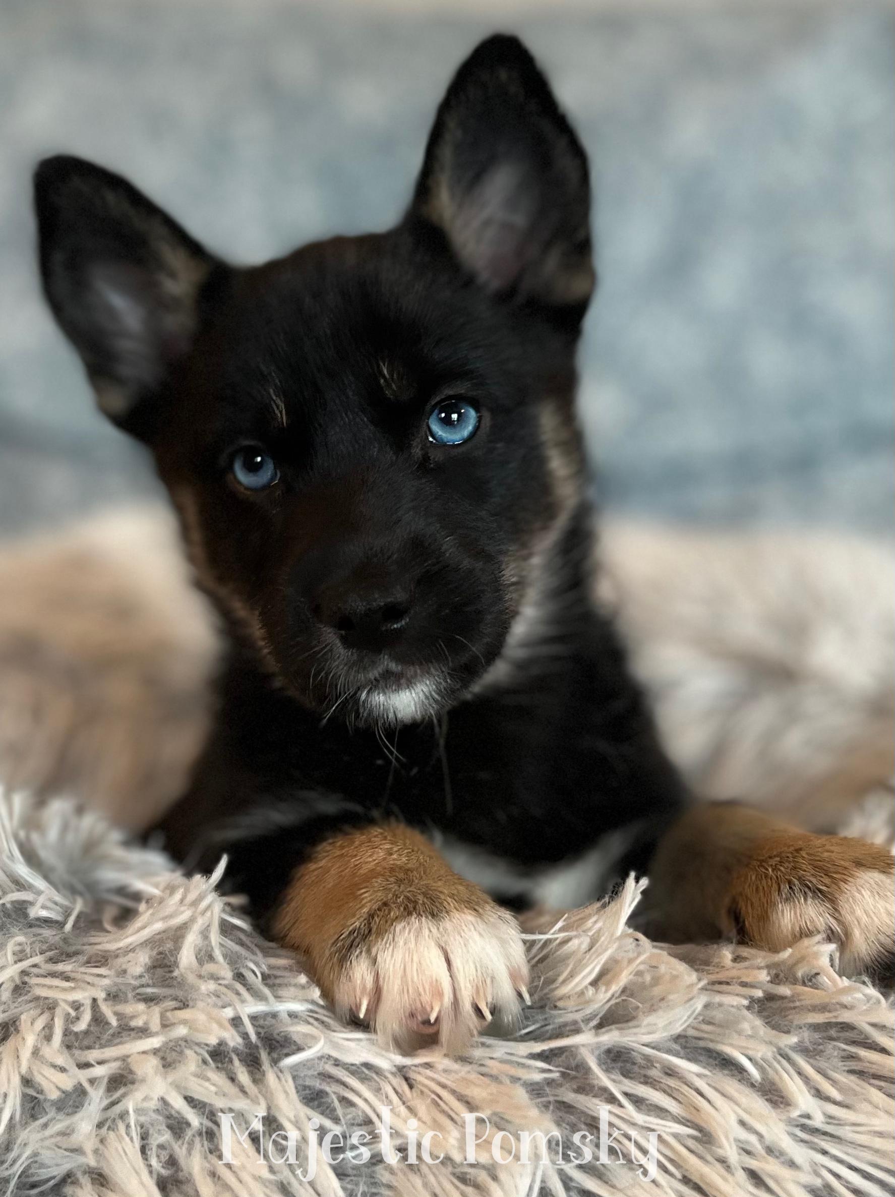 I'm Scena M., the breeder behind Majestic Pomsky located in Rogers, MN. We offer exceptional Pomskies with strong and healthy genetics. We have a variety of coats and produce mostly double blue eyes. Our dogs are bred for health, temperament, and intelligence. We socialize and train our puppies. We go above and beyond to provide the purfect fur baby companions!