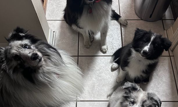 Our puppies include blue merle and white and black and white. Colors will vary depending on the parent dogs.