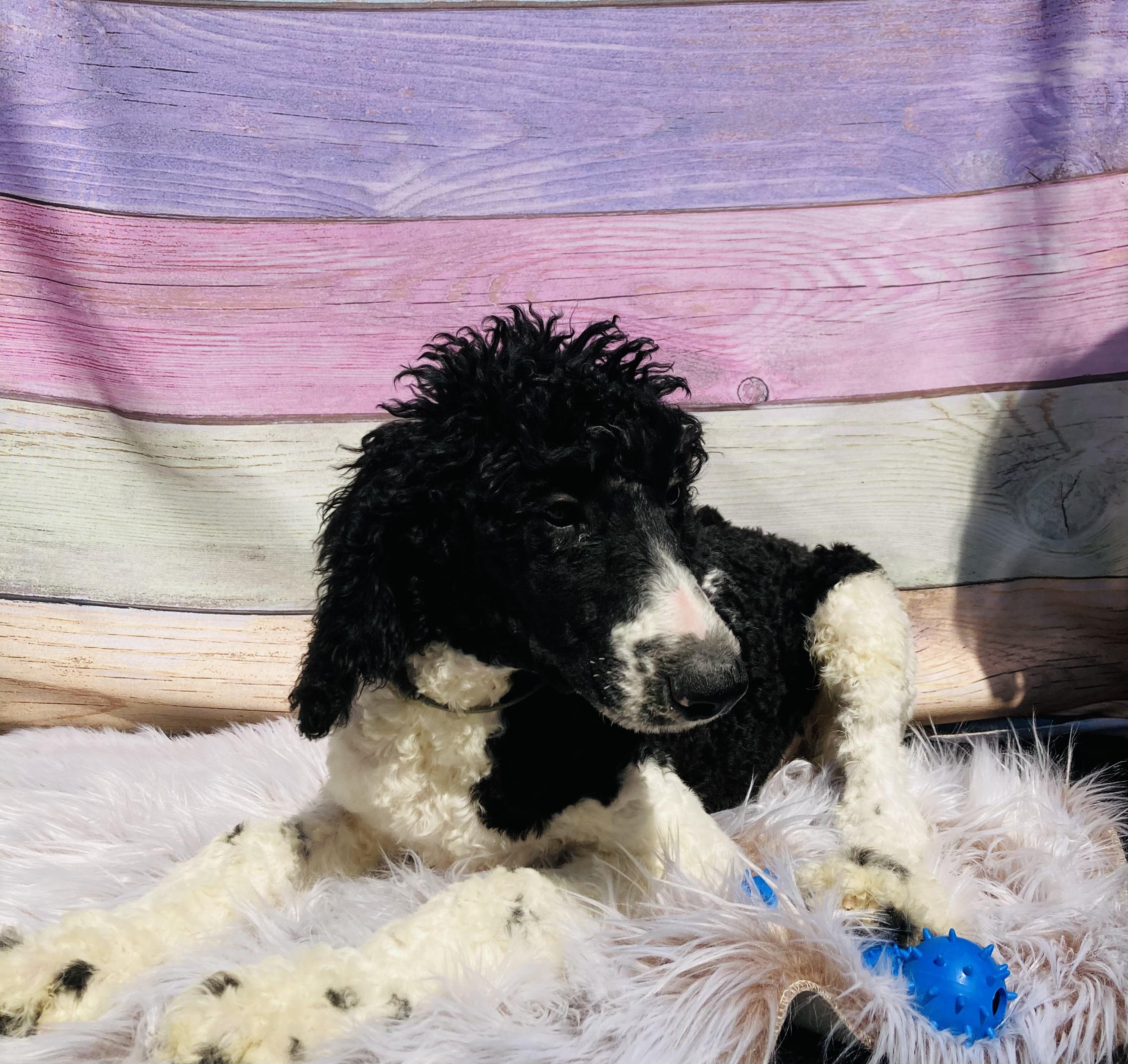 Our puppies include black and parti. Colors will vary depending on the parent dogs.