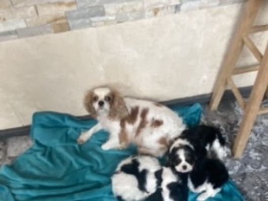 Our puppies include blenheim, ruby, black and tan, and black and white. Colors will vary depending on the parent dogs.