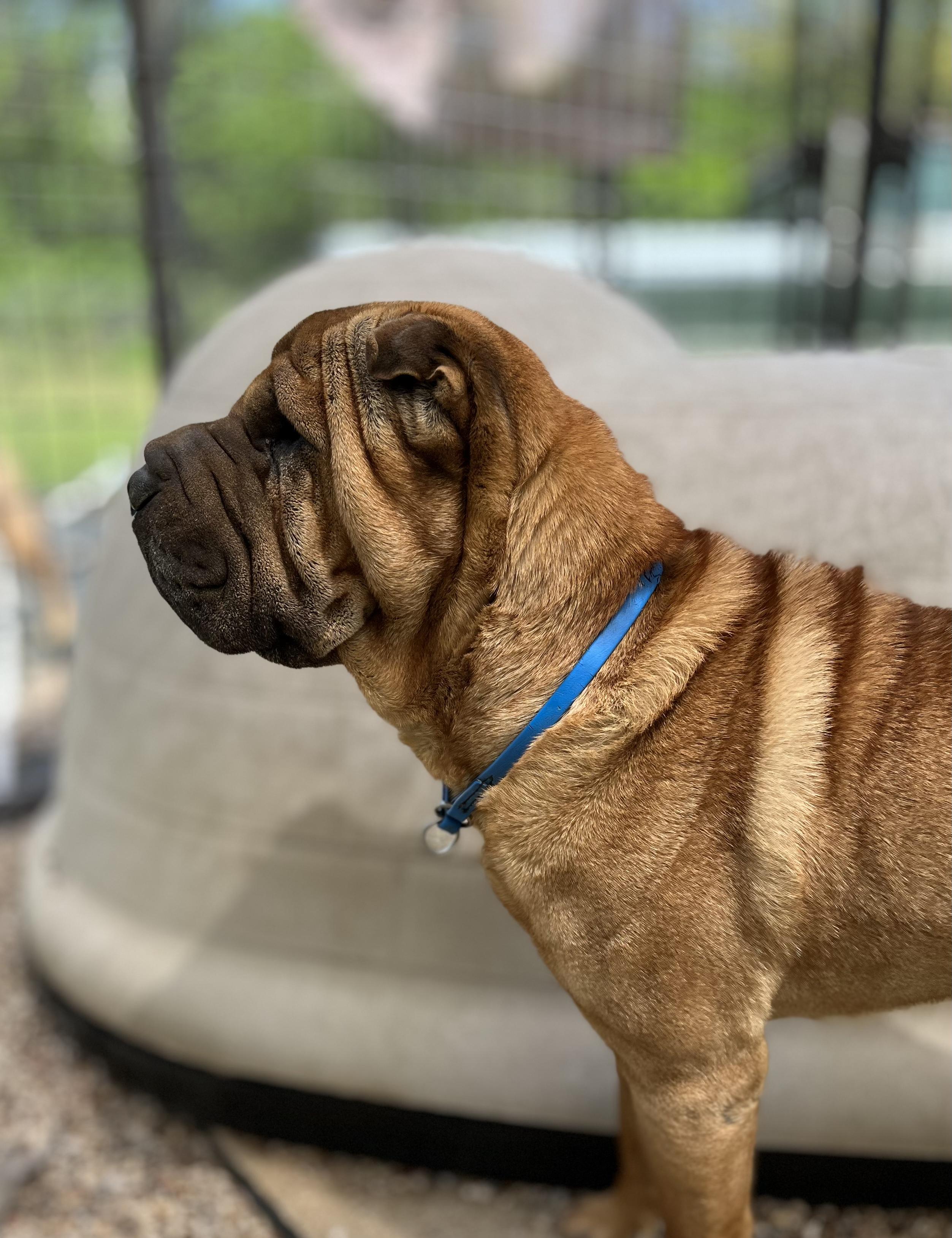 Artie is a male Chinese Shar-Pei. Carefully selected as a great representative of his breed, Beth decided to make him part of their program. Beth has passed Good Dog’s screening process, which involved a review of their breeding practices, environment, and the mental and physical health of their dogs.