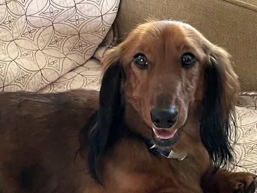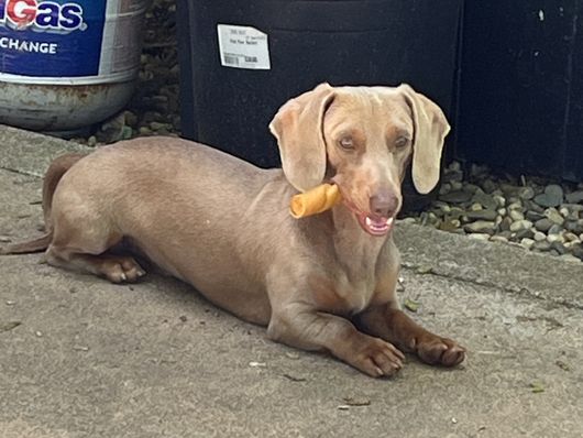 Higgins is a male Dachshund. Carefully selected as a great representative of his breed, Danelle decided to make him part of their program. Danelle has passed Good Dog’s screening process, which involved a review of their breeding practices, environment, and the mental and physical health of their dogs.