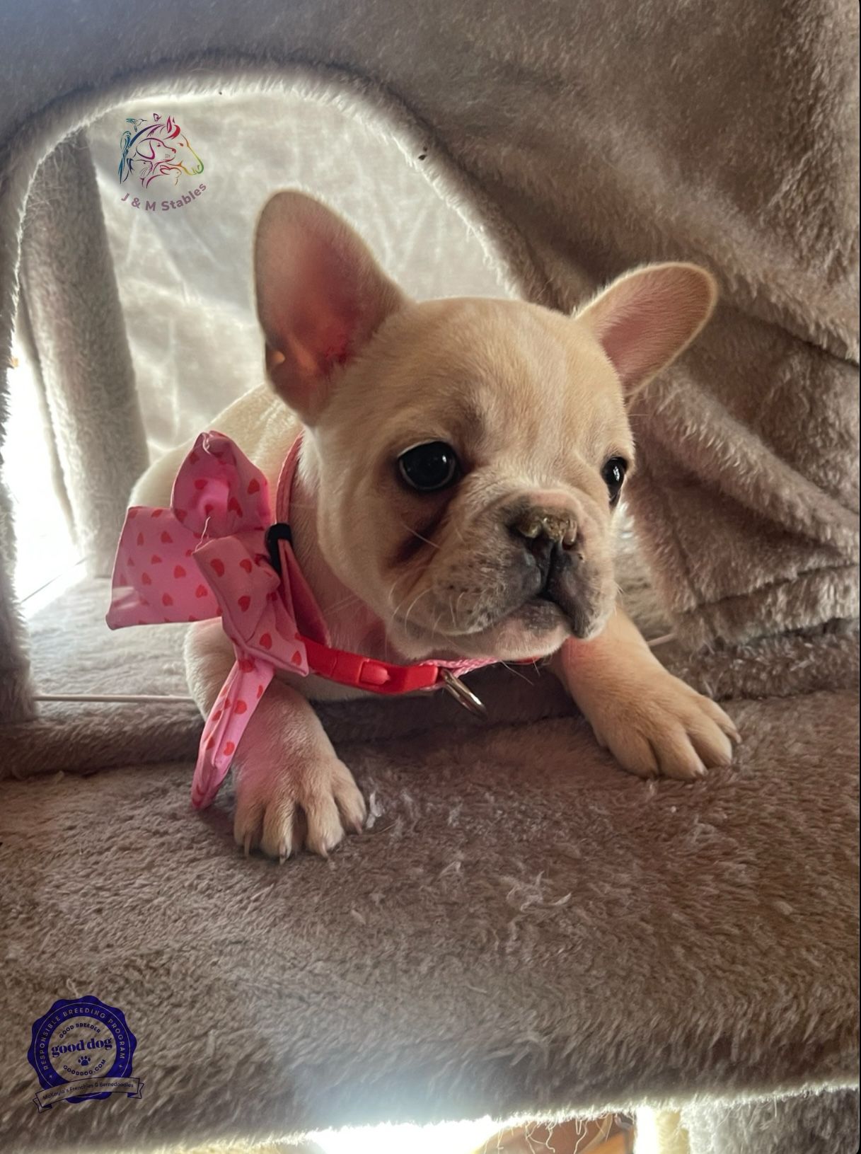 Francesca is a female French Bulldog. Carefully selected as a great representative of her breed, MaKayla decided to make her part of their program. MaKayla has passed Good Dog’s screening process, which involved a review of their breeding practices, environment, and the mental and physical health of their dogs.