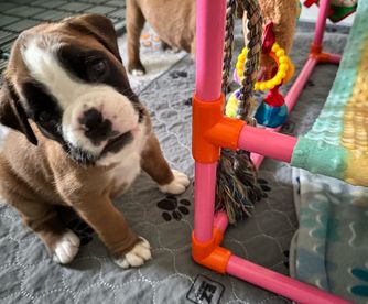 I got my first boxer in 2009 and fell in love with the breed. My first 2 boxers had health issues, mostly genetic, that can be tested for before breeding so the pups are not impacted. After heartbreaking experiences, I educated myself on health testing and ethical breeding programs and am now proud to produce high quality, healthy pups!