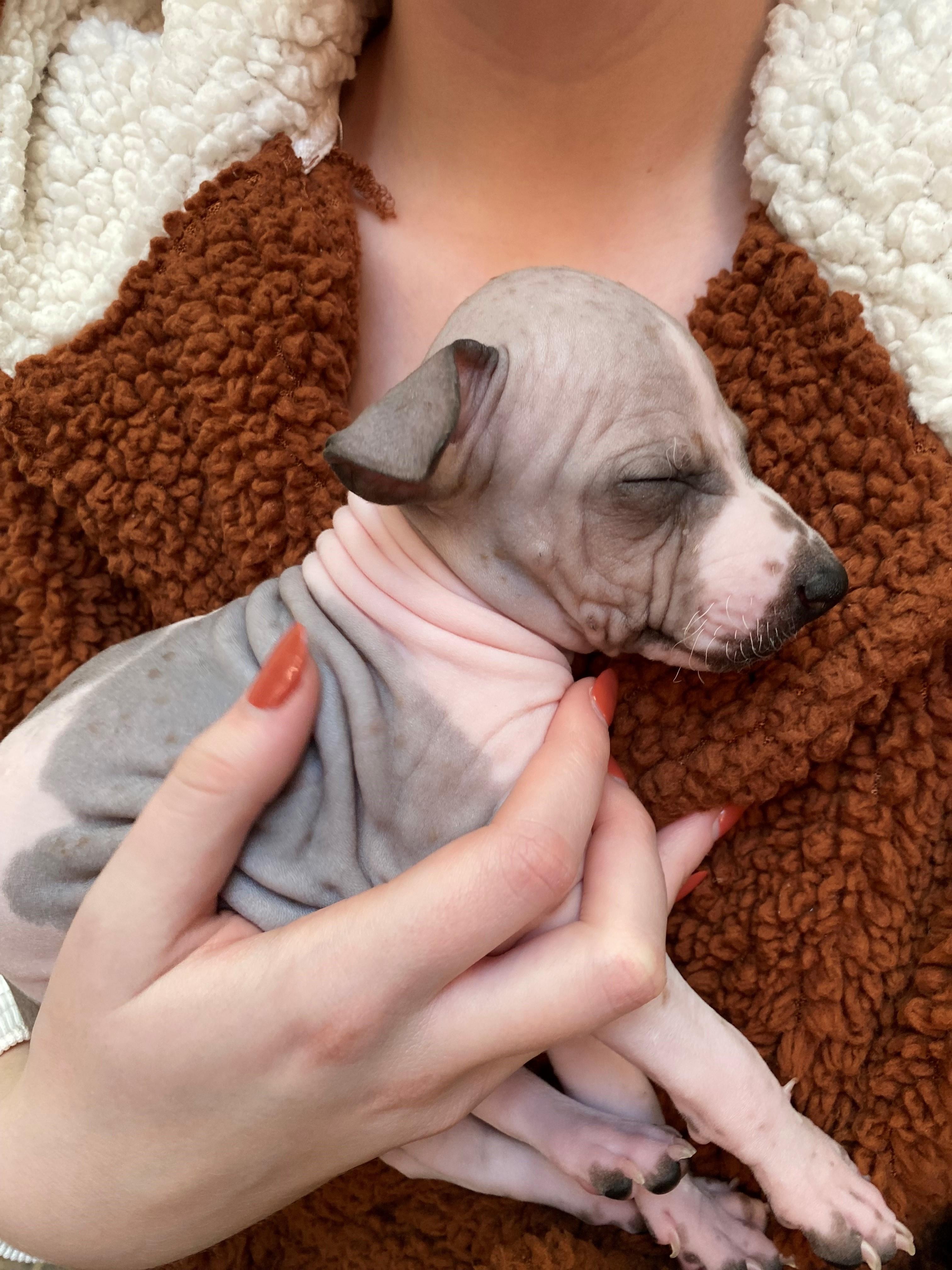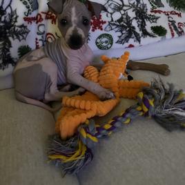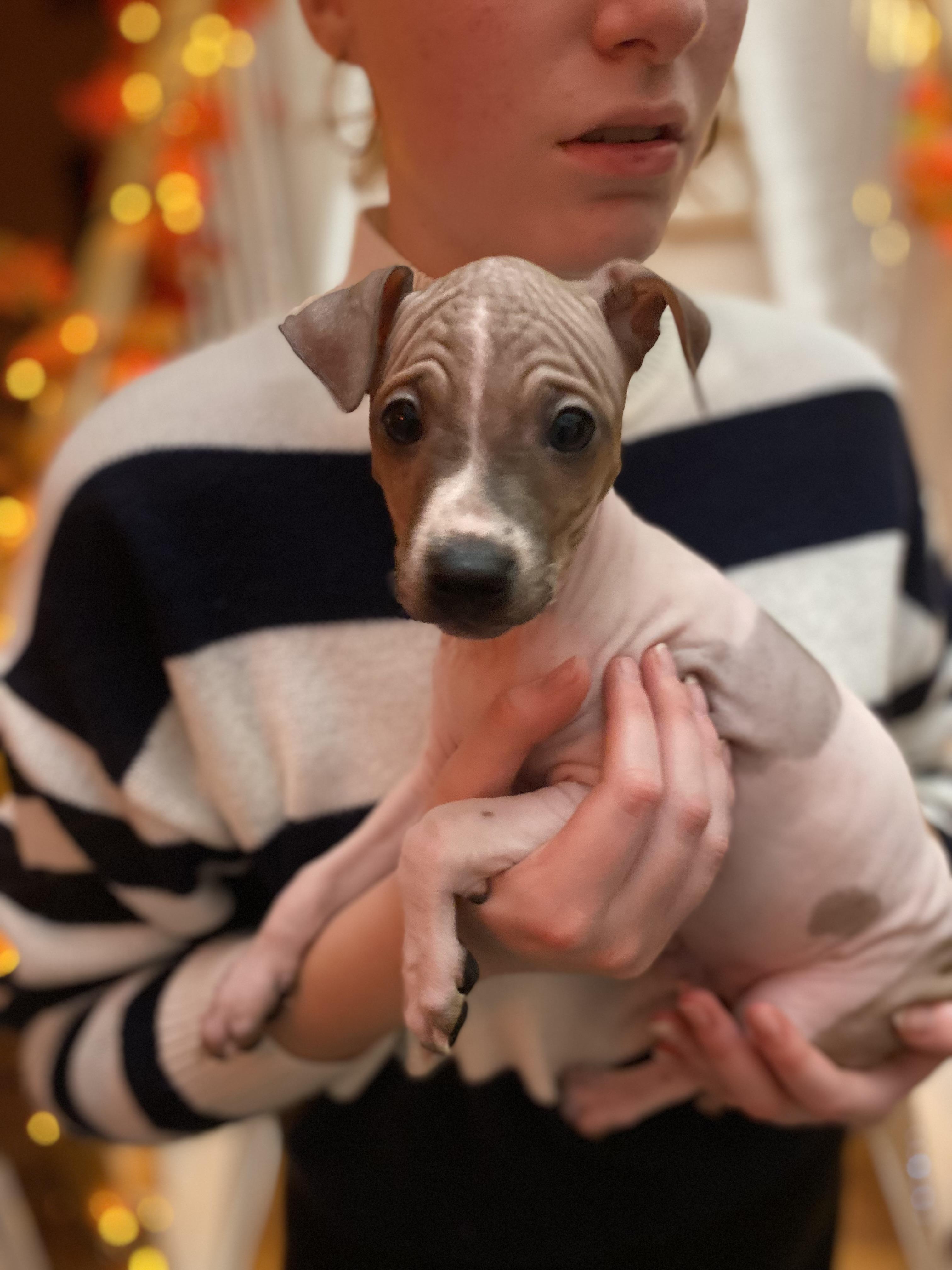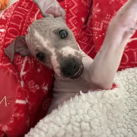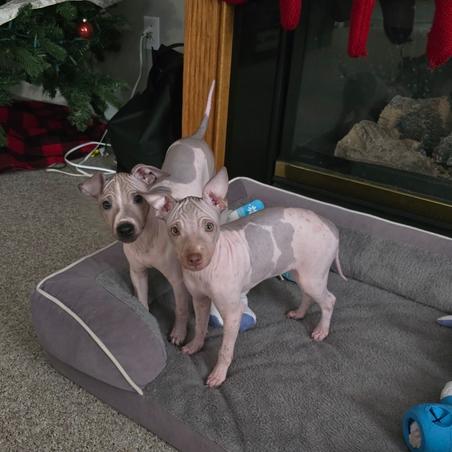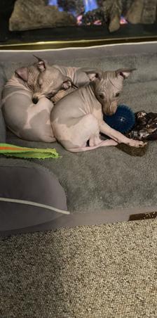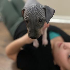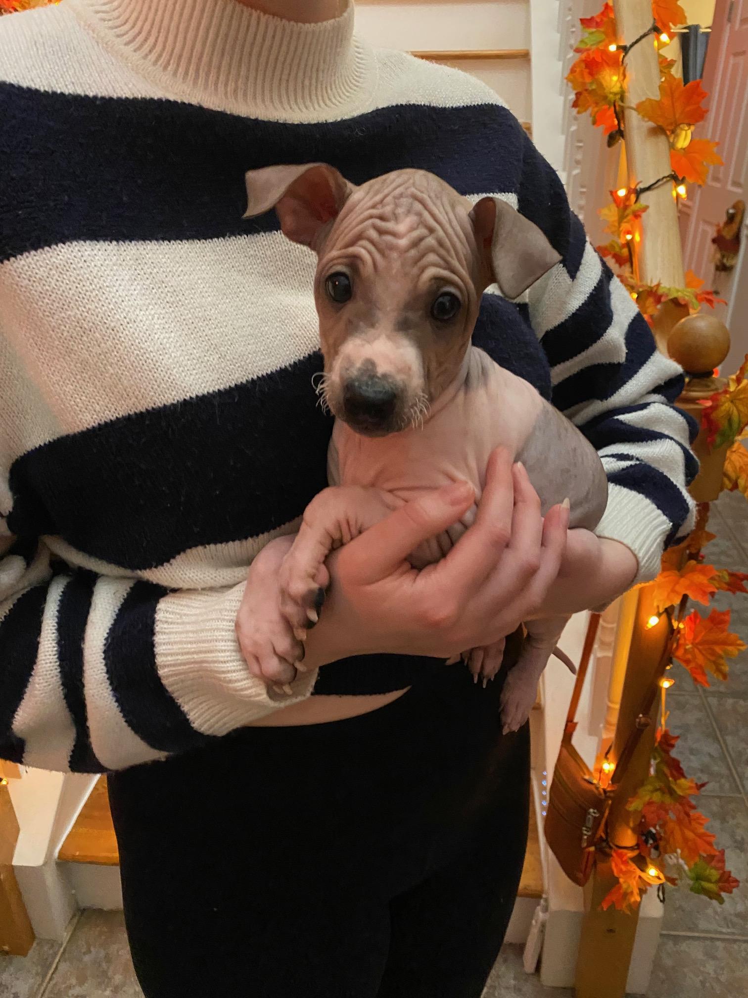 Wonderful Review for Neo & Our Amazing Aht Experience! Hi Valerie, We just wanted to take a moment to thank you for bringing Neo into our lives! He is truly our forever family bundle of joy. From his love of cuddles and playtime to his silly antics rolling in the leaves, he has filled our home with so much happiness. Our experience with Valerie was 100% positive—she was incredibly communicative throughout the entire process, making everything smooth and reassuring. Both my partner and I wholeheartedly recommend you to anyone looking for a loving and well-raised American Hairless Terrier. Neo is the perfect mix of temperament and silly yet obedient, and he has been a wonderful fit for our home—especially for those with asthma or allergies to coated dogs. If any of our friends or family are looking for a special companion, we would absolutely consider adopting from you again in the future. Thank you for everything—you’ve given us a best friend we instantly fell in love with! Best, Larissa and Doug