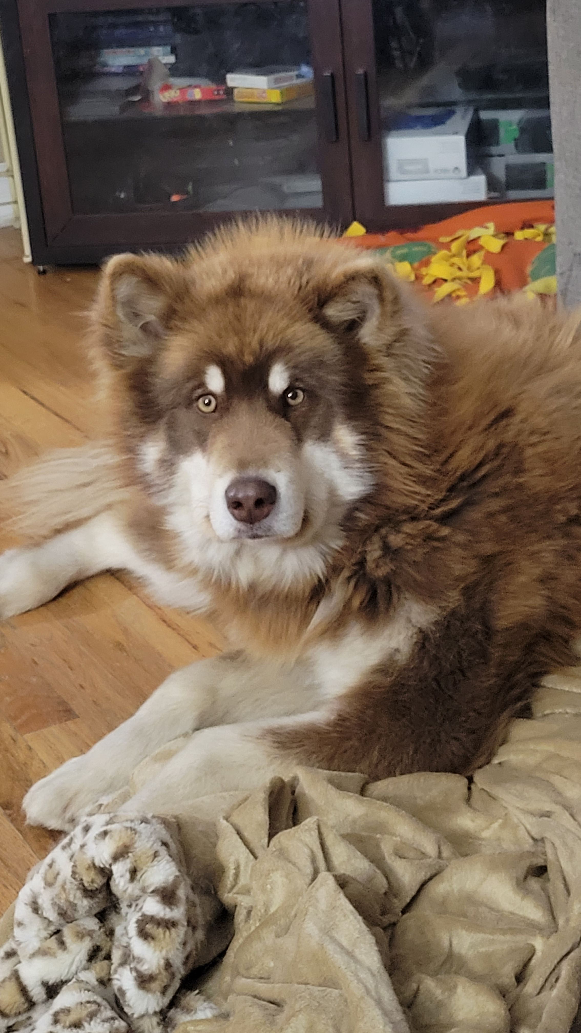 Big (estimated 130 lbs), fluffy, amazing personality. Scored EXCELLENT on his prelim OFAs.