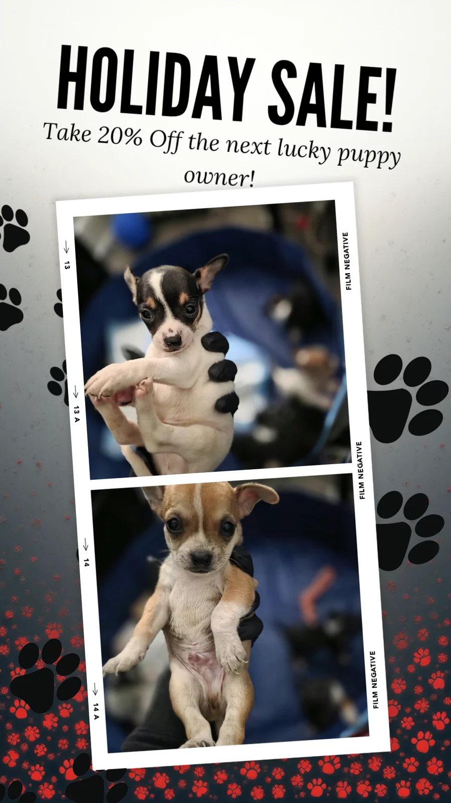Holiday Sale 20% Off to the next customer that rehomes a puppy.