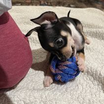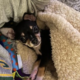 Koby is the sweetest most loveable pup you will ever meet. Koby loves to sit in your lap and get all the snuggles. His favorite treat is Bacon Bites.