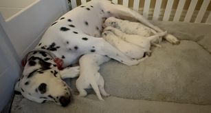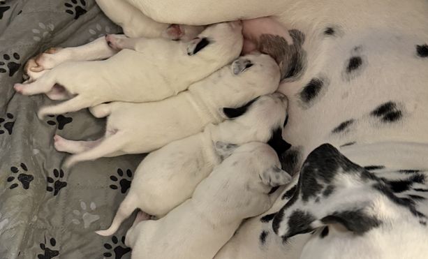 We’re beyond excited to introduce Doti, our beautiful Dalmatian who has just become a mama for the very first litter, Doti delivered a healthy and vibrant litter of 8 perfect little pups — each one already showing off their unique spots and personalities. Doti is registered with North American Purepreed Registry (NAPR).