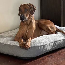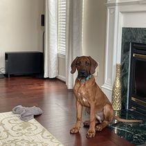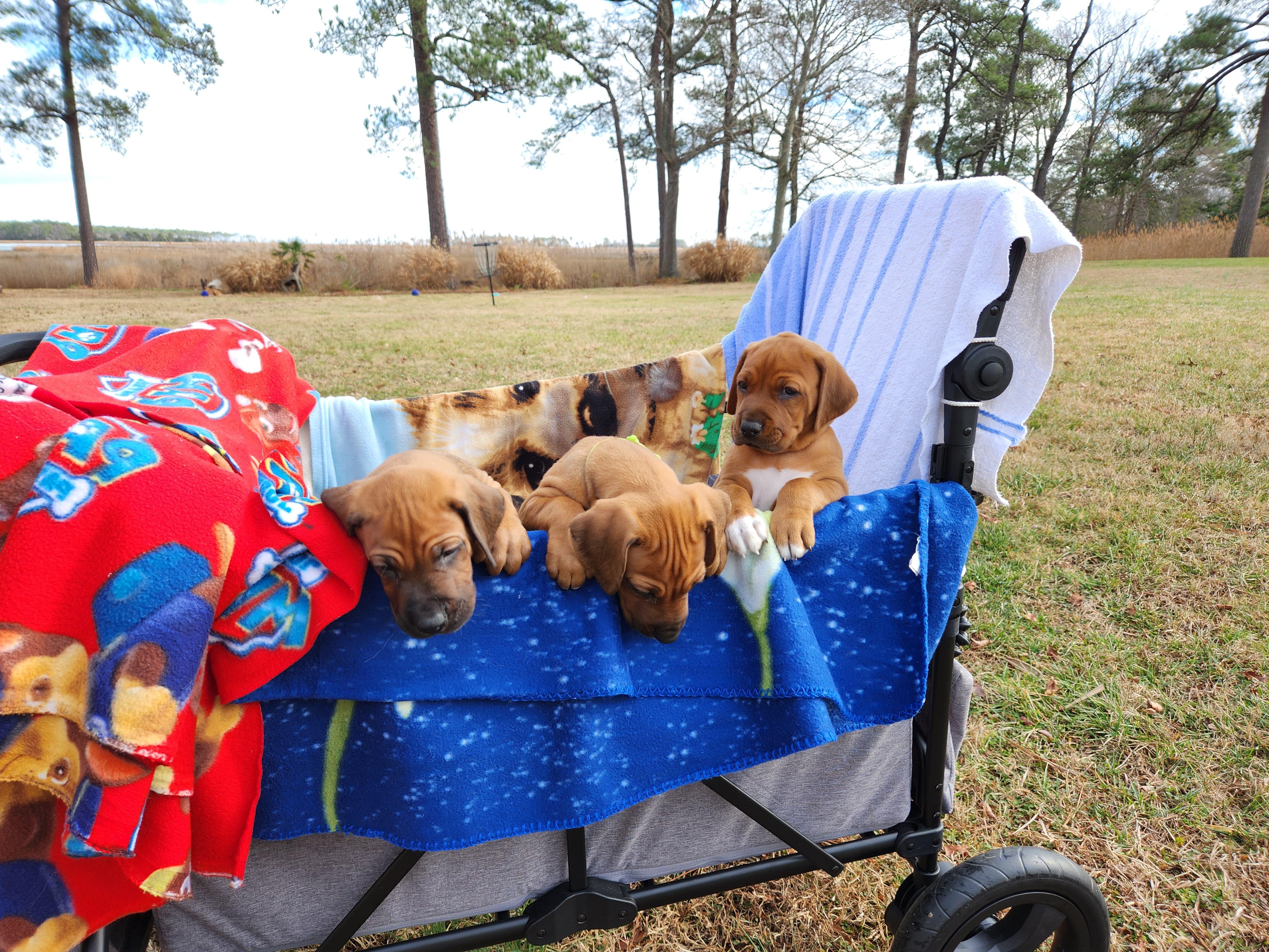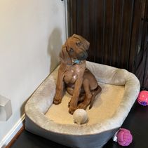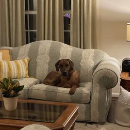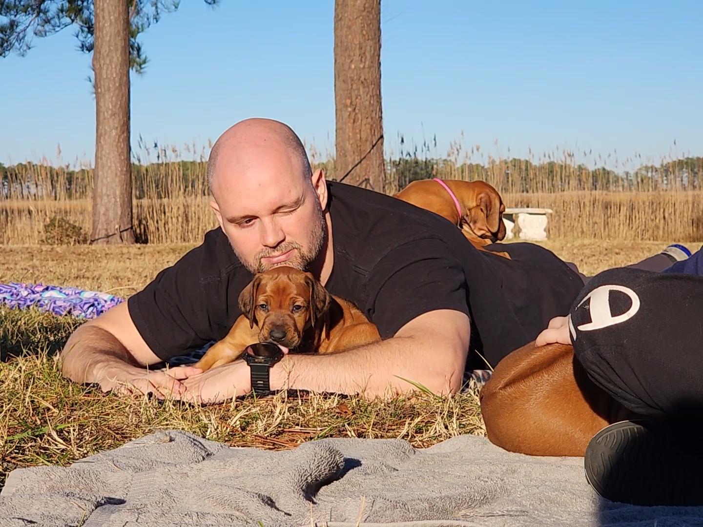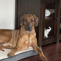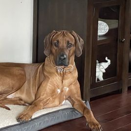 Fawn was excellent when working with me to adopt my new buddy, Obi. I talked to a number of other Rhodesian Ridgeback breeders who were ok at explaining the daily requirements of owning a ridgeback but with Fawn there was an instant connection. Fawn is not only extremely knowledgeable about animals, she also has a keen sense for understanding the needs of a ridgeback and quickly realized that I had a good understanding of Ridgebacks since I had grown up and have been around Ridgebacks all my life. Fawn was able to give me great tips on nail cutting, grooming, food, medicine schedules, and all that stuff related to my bud, Obi. She is the perfect den mother to her pups. I still make a call out to Obi that Fawn made when the puppies were less than 8 weeks old, and he still responds the same way that he did when he was a puppy. Fawn is the perfect Rhodesian Ridgeback breeder to work with in my mind, and she has the most handsome puppies!