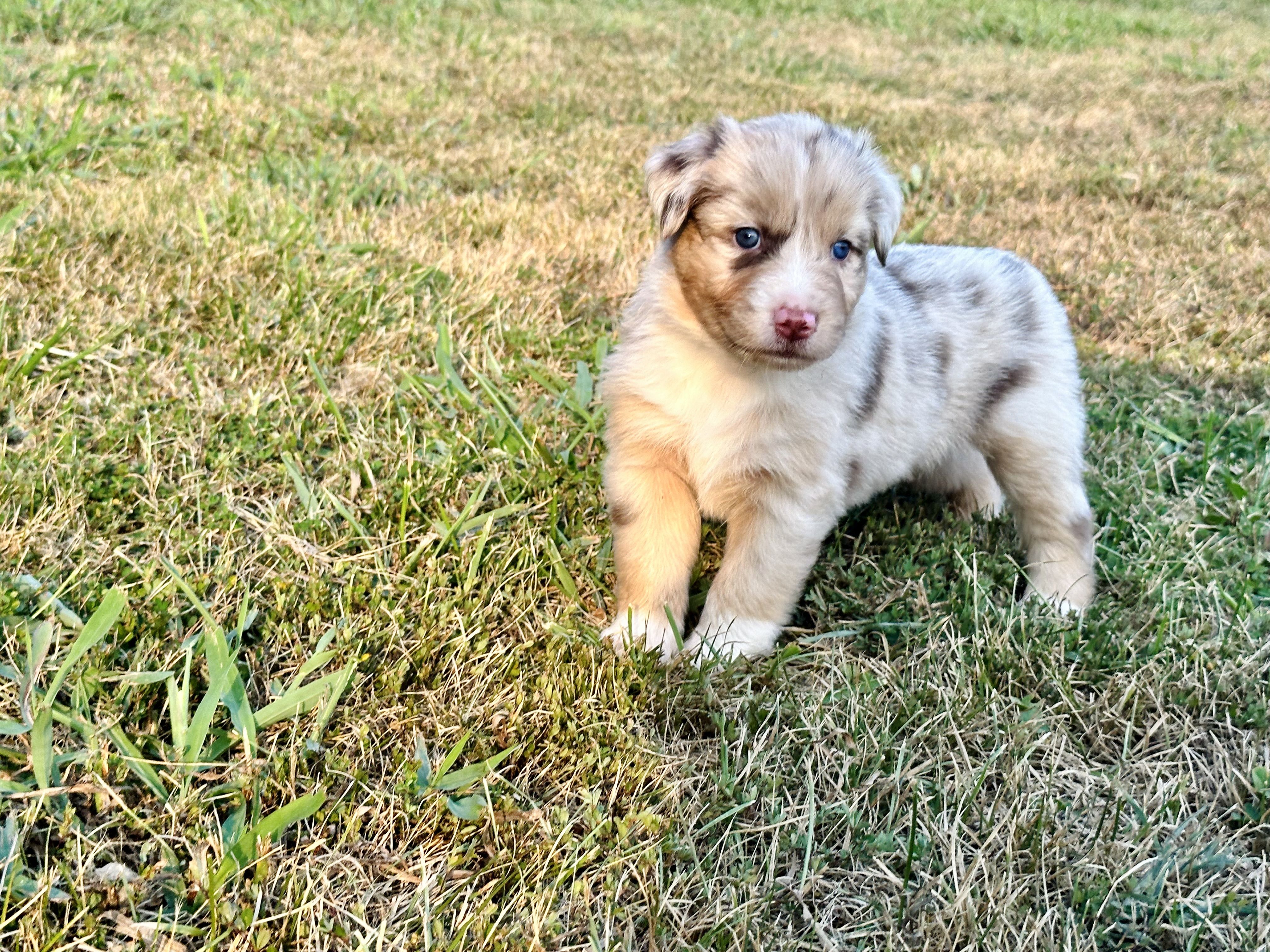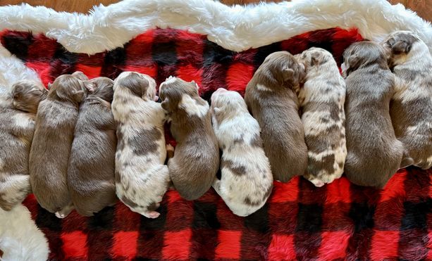 Our puppies include black, red merle, blue merle, and red. Colors will vary depending on the parent dogs.