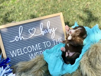Puppy prices include a $300 non-refundable deposit and between $600 - $1,200 final payment, before taxes & fees.