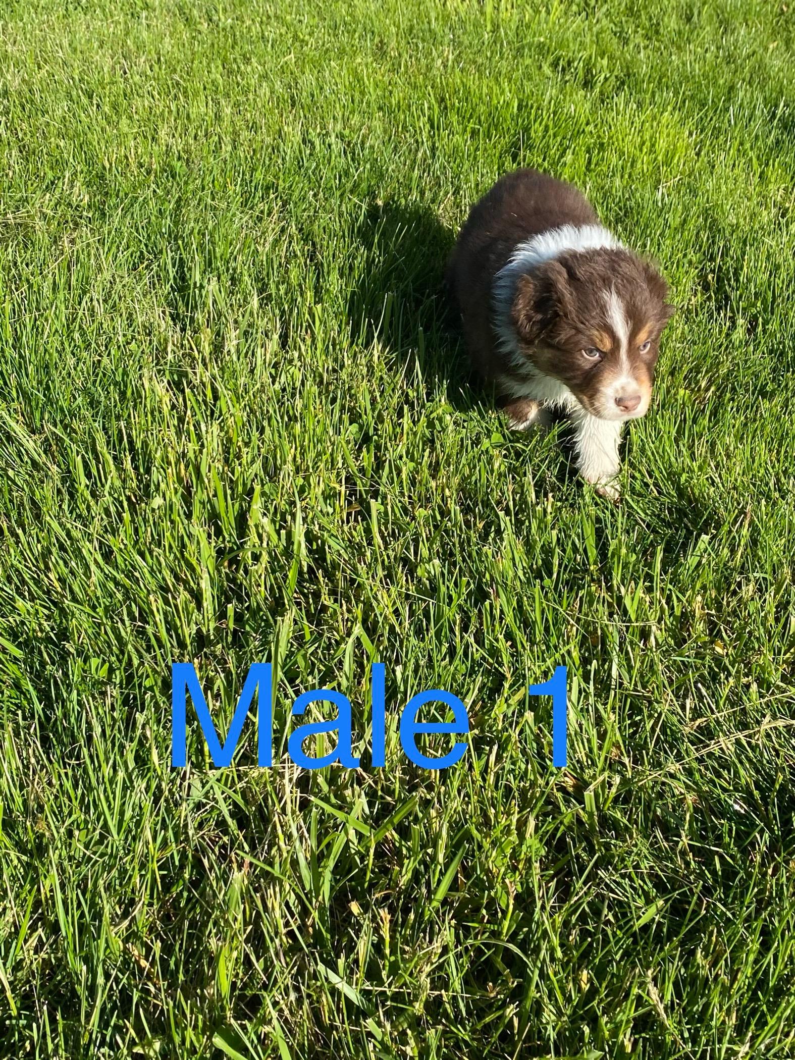 Our Australian Shepherd puppies are red. Pembroke Welsh Corgi puppies are white and black. Colors will vary depending on the parent dogs.