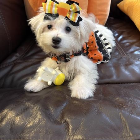 Ollie is a very sweet & smart Maltese. He loves to play and chase his Taco that hehas had since 4 months old.