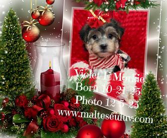 Saphire is a beautiful F Maltese. She has 4 beautiful Morkie babies. She is a very good Mommy.