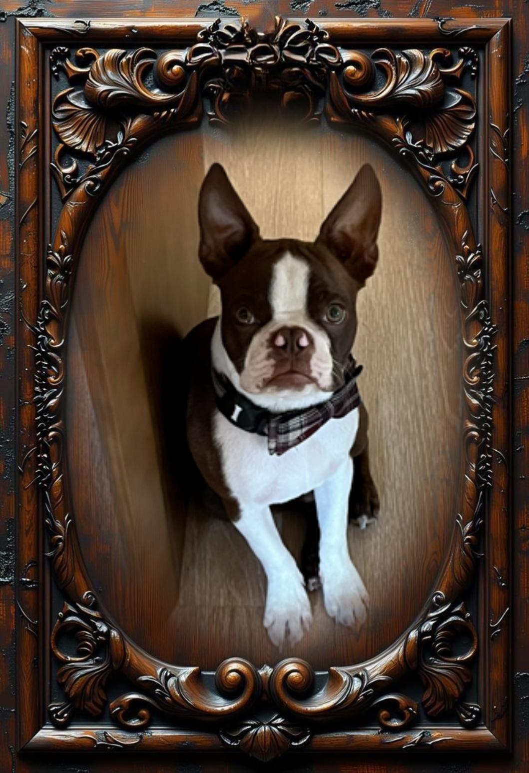 Pearl is a female Boston Terrier. She was born March 24, 2025. She has a great temperament and gets along great with adults and children.