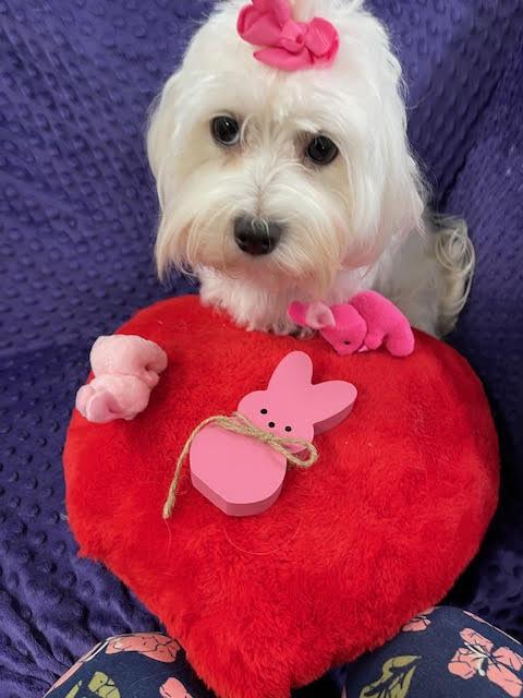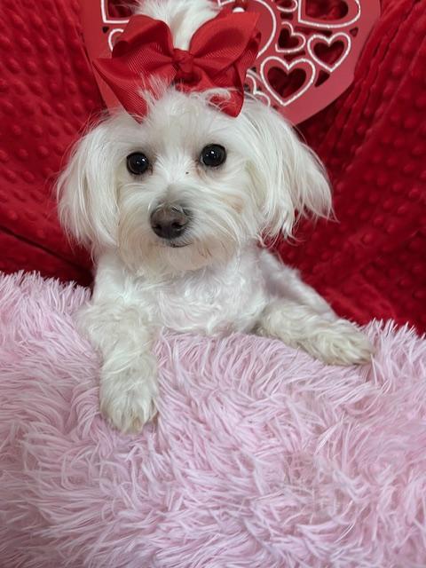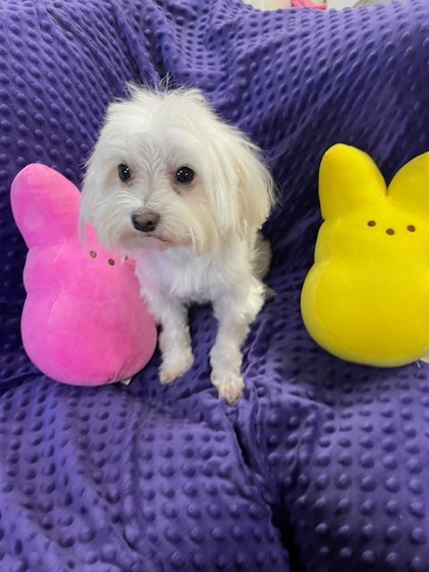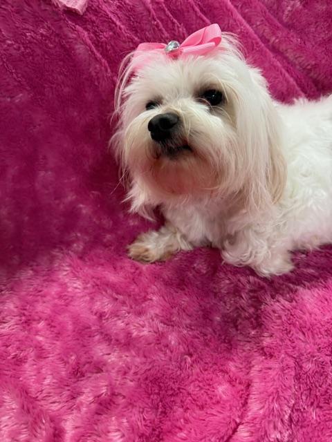 Paris is a sweet Maltese. She weighs 7 lbs. loves attention and is a excellent Mommy