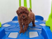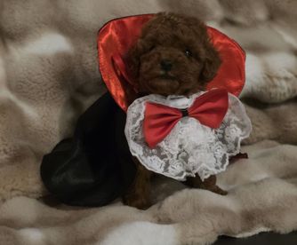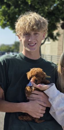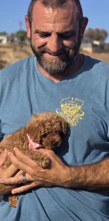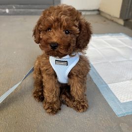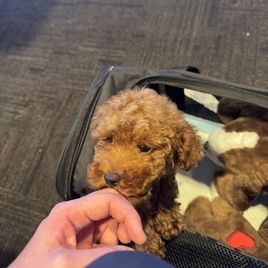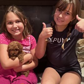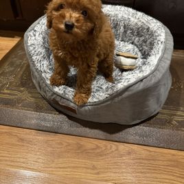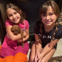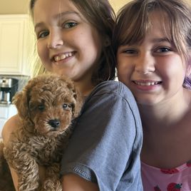 Ellie was awesome. She made everything so easy for us. We had a tight flight into San Diego and she even got a hotel to make sure it would work. So many good things to say about Ellie. But let’s talk about the amazing puppy we ended with. We named her Franni. We had been searching for our Franni girl for a long time. We wanted a small, red, curly poof ball. And boy, did Ellie deliver. She definitely has the bloodlines for the most perfect pups. Our little Franni met all of our expectations and beyond. She is the most adorable pup ever and she immediately accepted our family the day we brought her home. Socialized, immediately took to her crate, potty training is a breeze so far. This puppy from Ellie could not be more perfect! Thank you Ellie!!