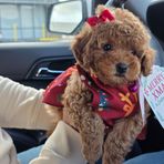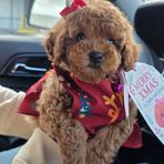 Ellie met me at the airport with Autumn and prepared her for the travel not only with essentials such as dog food, water bowl, pee pads, microchip registration, and pet insurance information, but also bathed and dressed her along with a sweet Christmas tag for my boys! Autumn is transitioning smoothly into our home with enjoying lots of cuddles and play time. We can say without a doubt that Ellie provides compassionate care for her pups. I would highly recommend her to anyone looking for a maltipoo! Thank you Ellie!