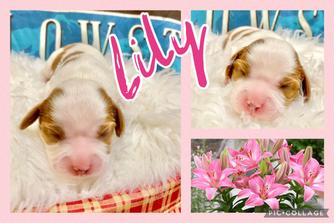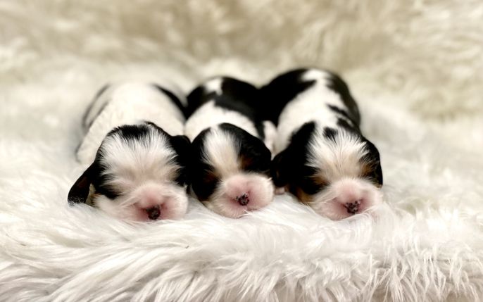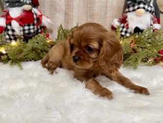 Our puppies include blenheim, ruby, black and tan, and tri-color. Colors will vary depending on the parent dogs.