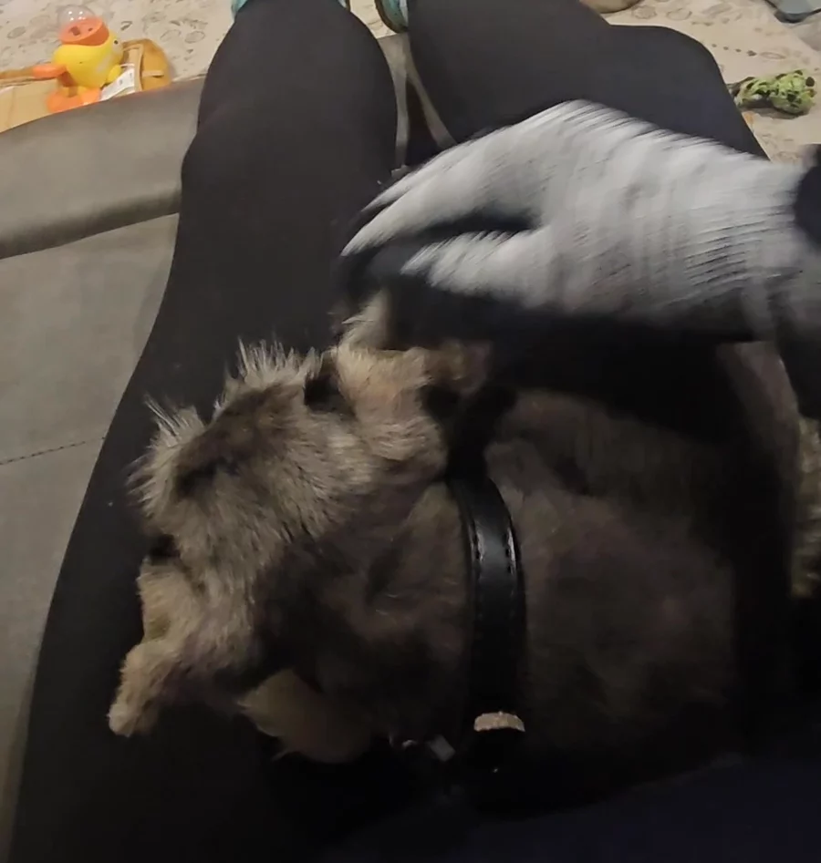 Hair and skin treat time! We call my husband the cookie man and he's got their attention. 🤣