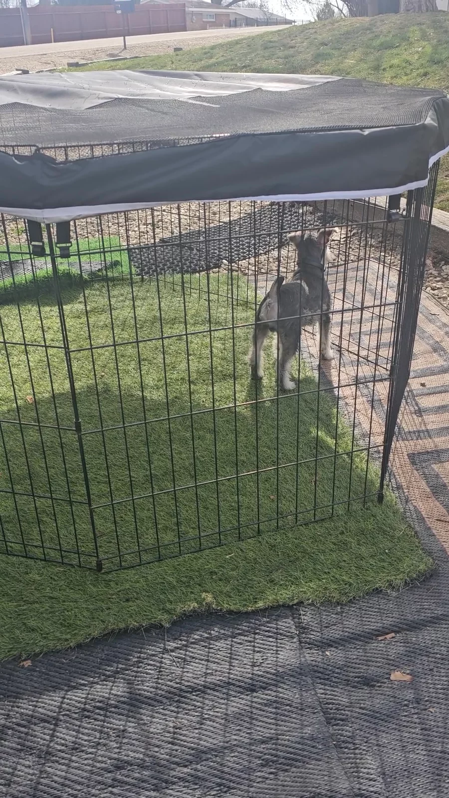 Lucky and Meg like to play outside when the weather is nice but they are small and we have hawks and eagles in this area so this was an idea. I still don't leave them outside unattended but I do feel a lot safer this way. Mama Meg's Mini Schnauzers #schnauzerlove #schnauzerlife #newpuppymama #puppyjourney #puppylove