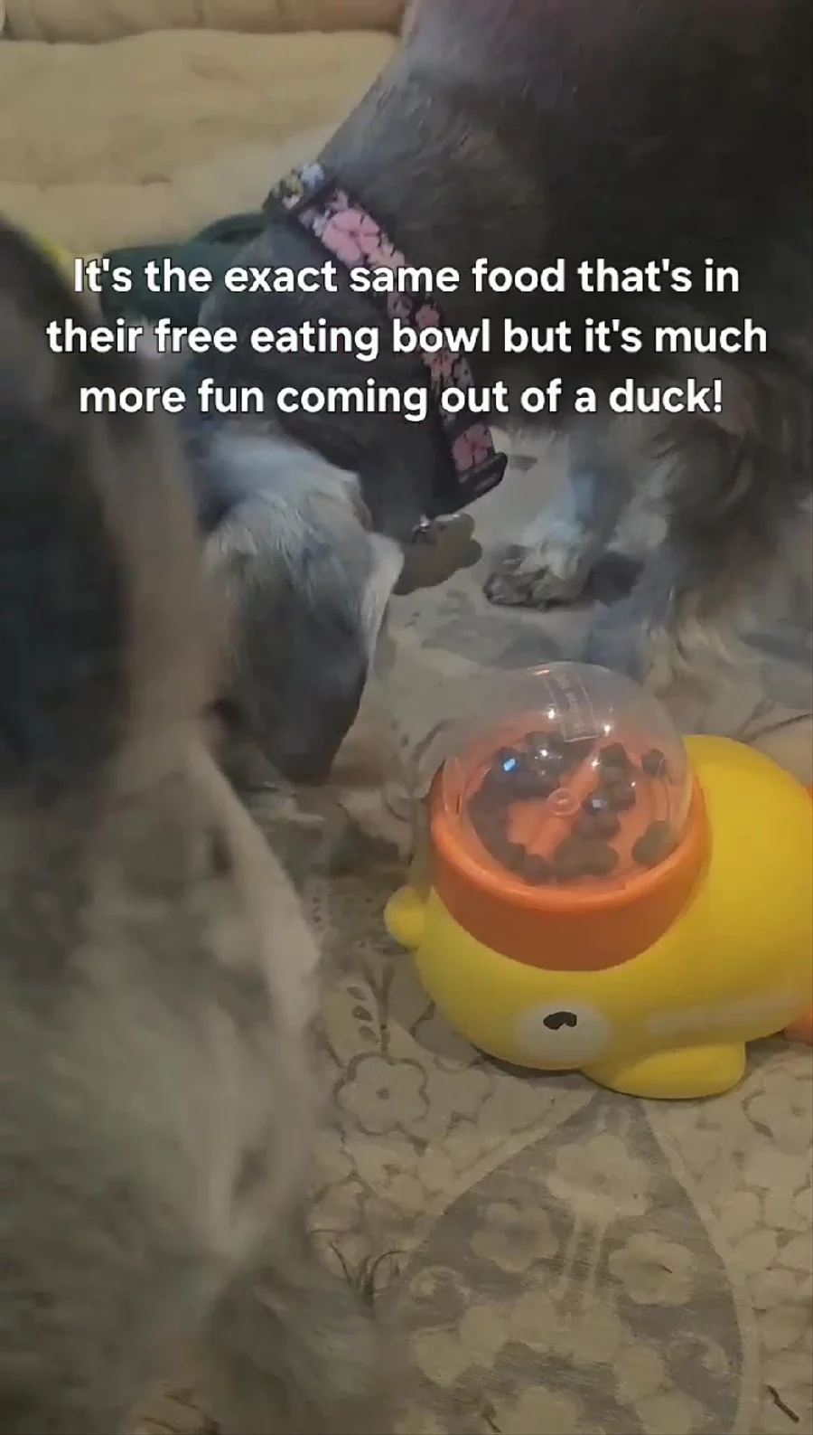 Fancy food delivery system! Schnauzers love a puzzle! They are figuring this one out! Meg is sitting by and letting Lucky do the work. She's no dumby! 🤣😀😉🥰