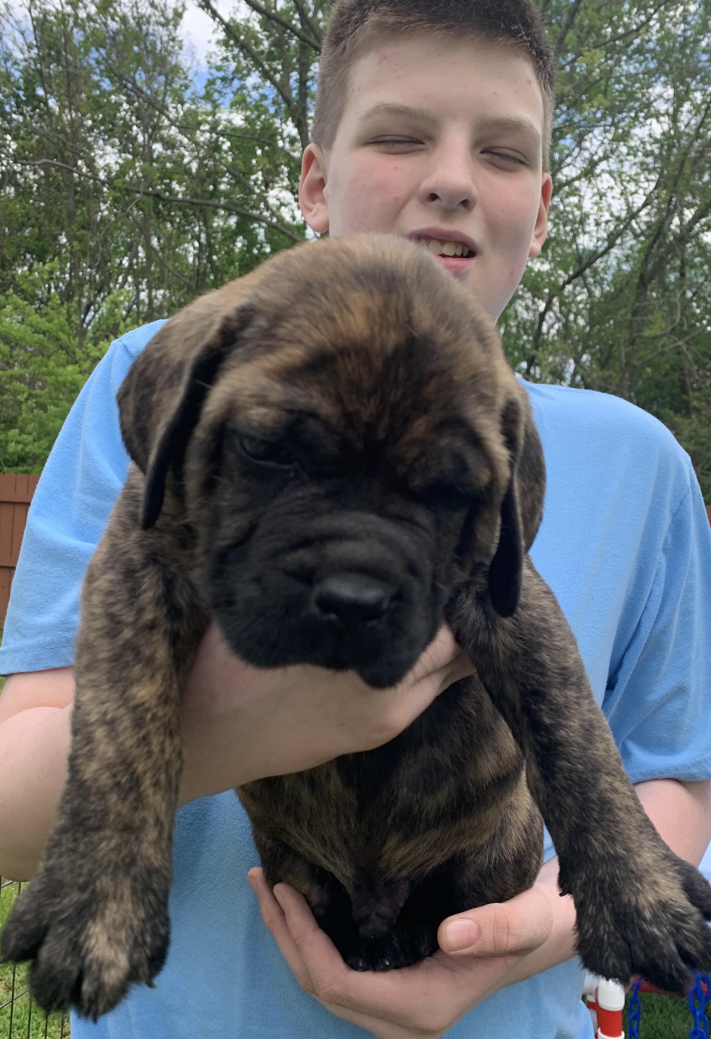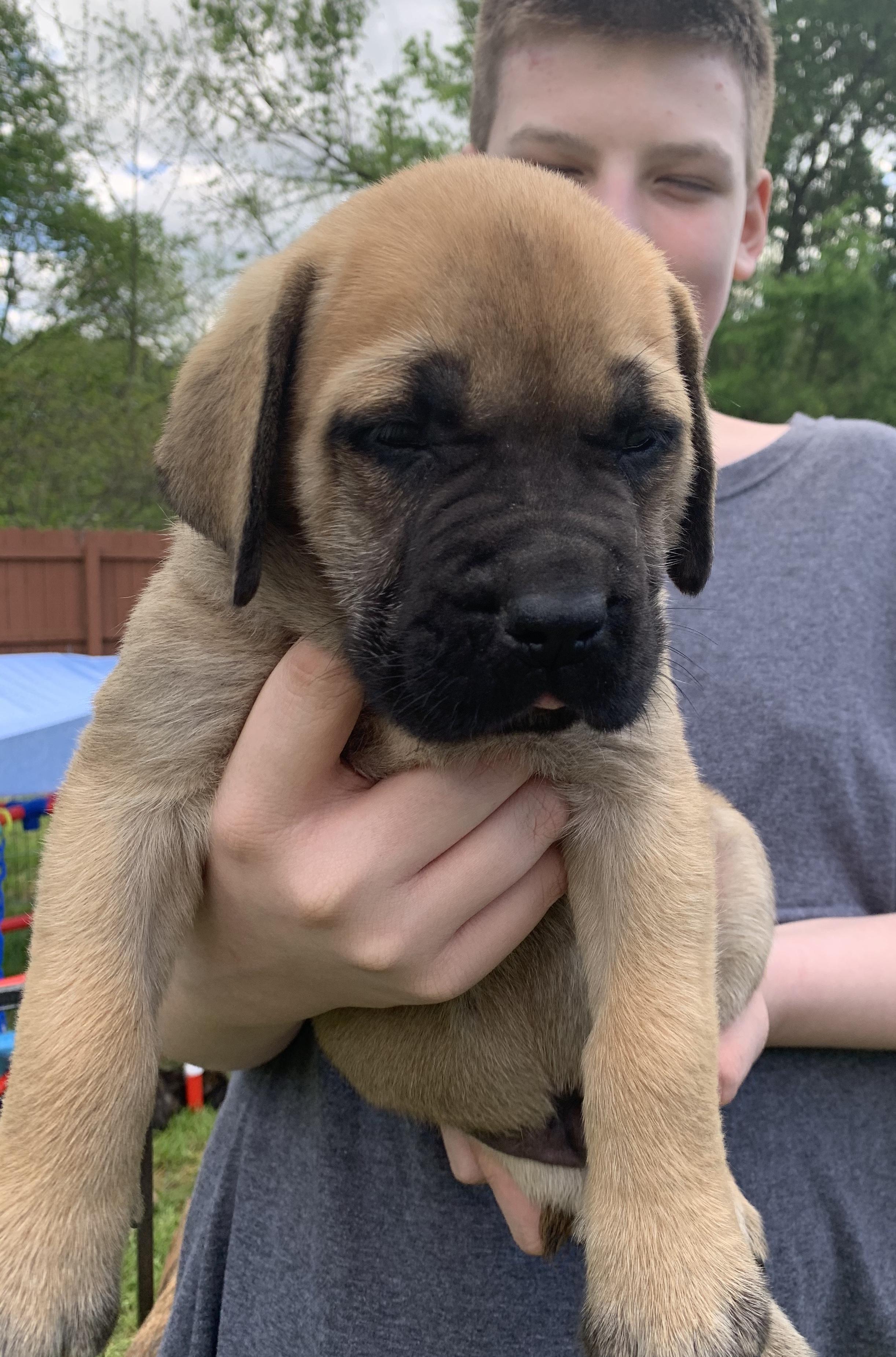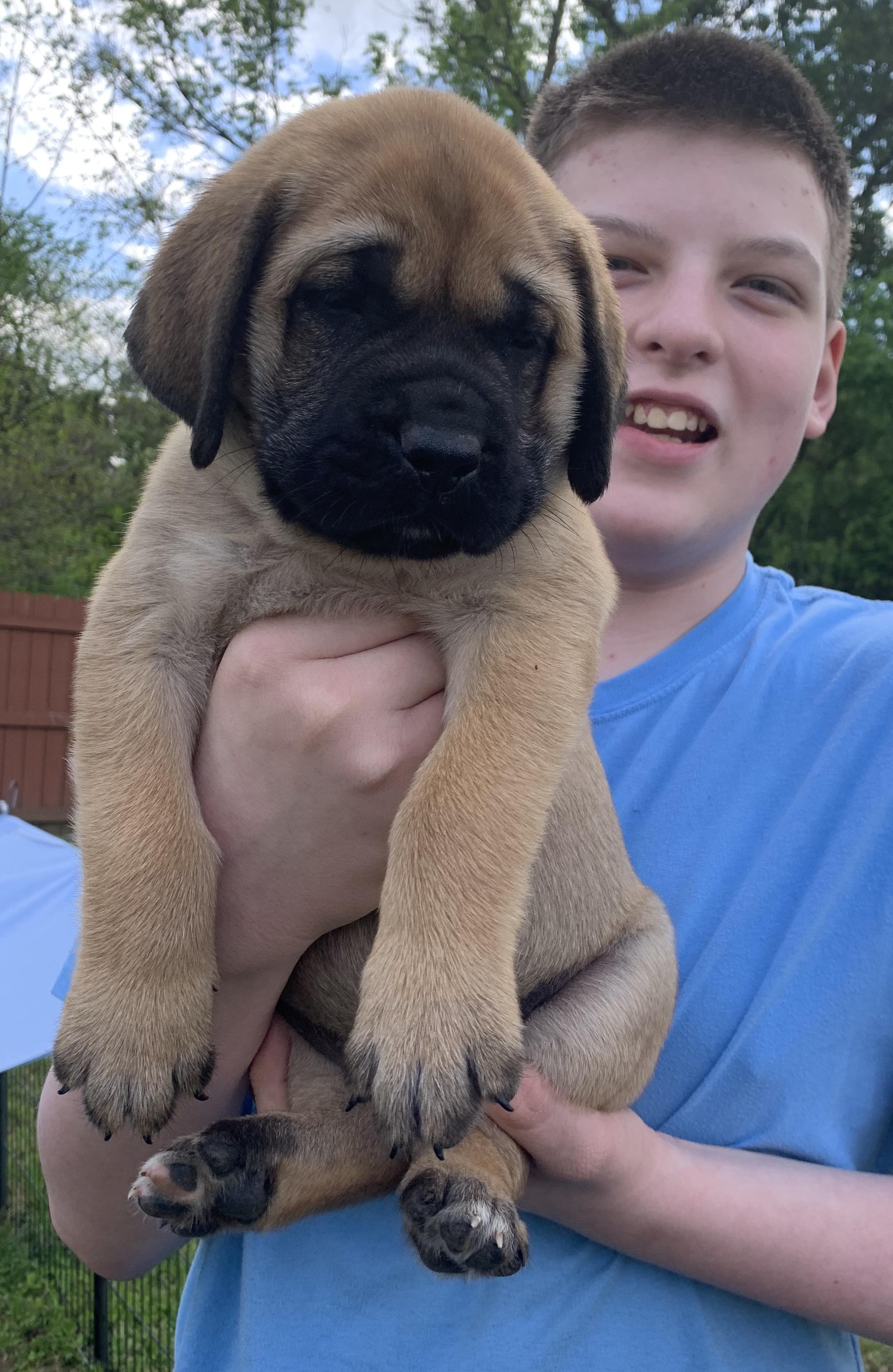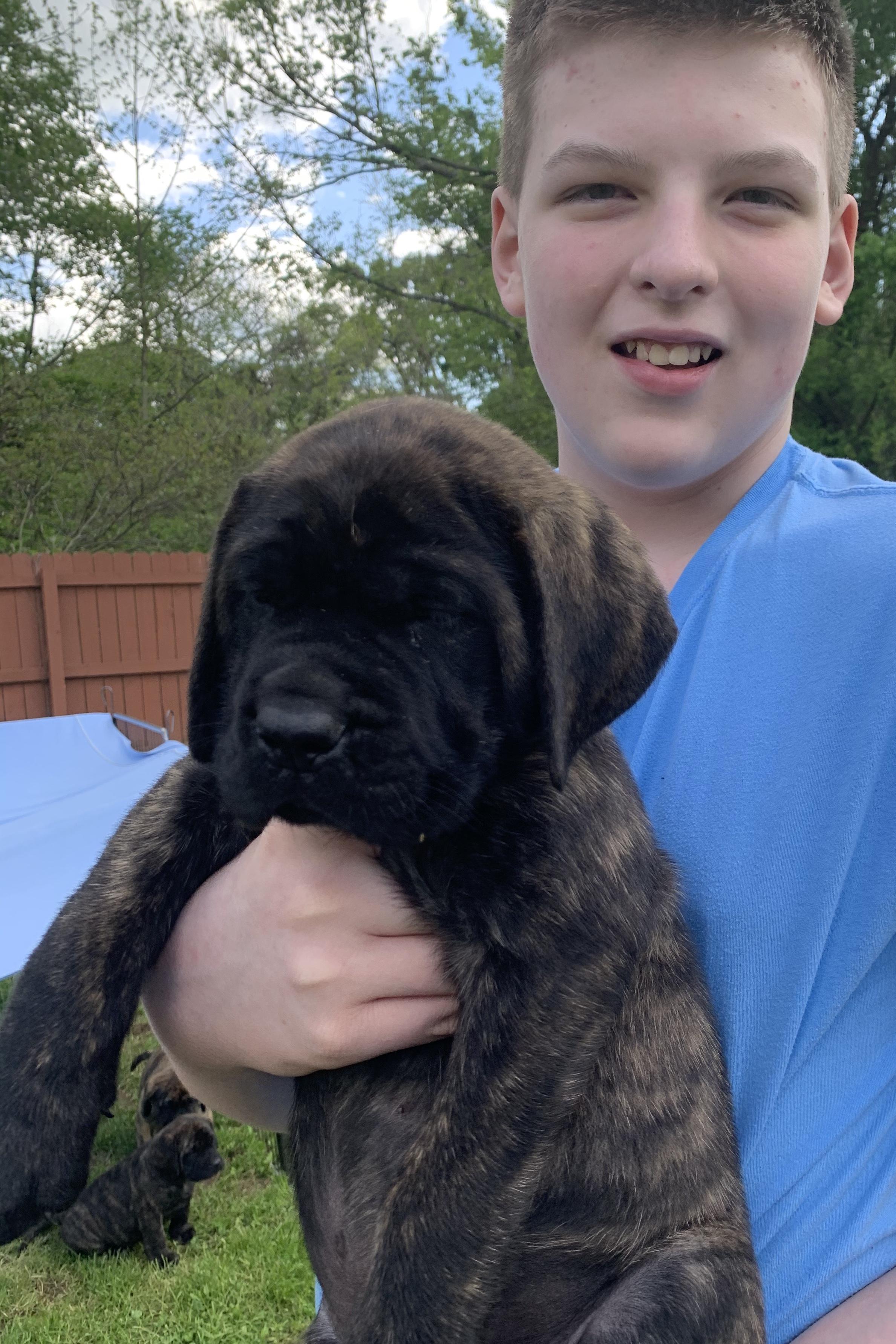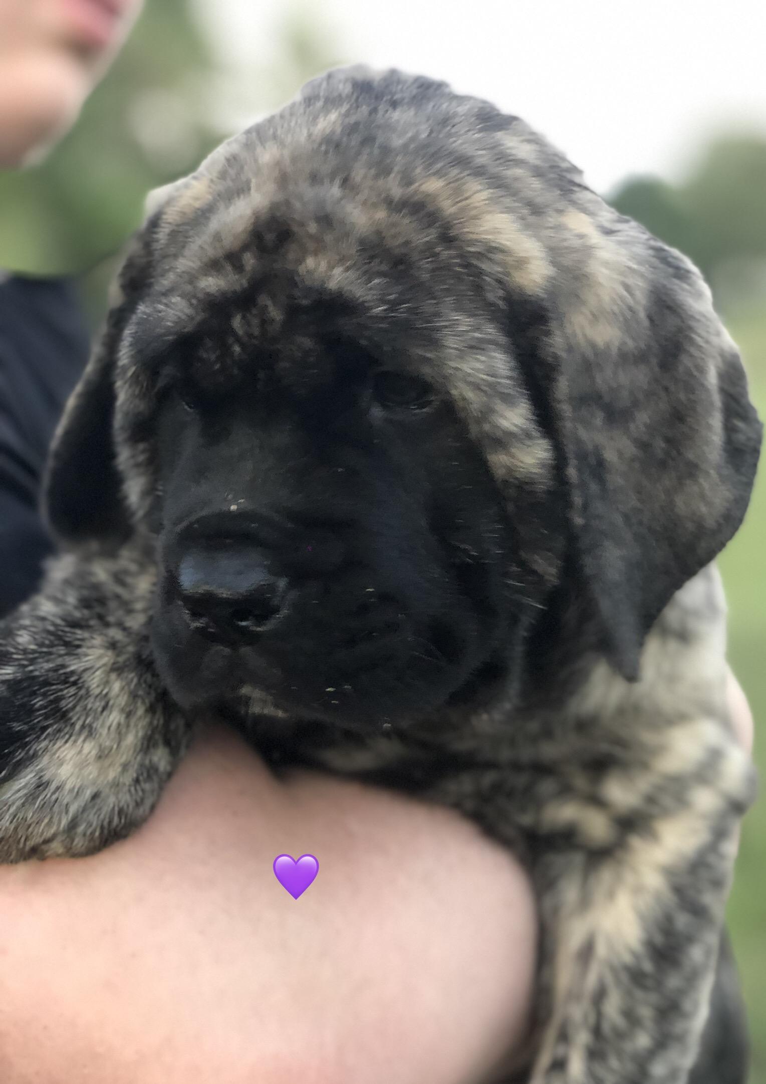 I picked Elesha as our breeder because it was evident she cares a lot about her dogs and puppies. Elesha kept us updated along the whole process and answered any questions or concerns we had. She went above and beyond to make us comfortable and prepared for our puppy! Wenonah is the best puppy we could have asked for … she is kind, loving, smart, confident, and sassy! These puppies were for sure loved and cared for before leaving for their forever homes. If I ever get another mastiff, I will definitely choose Elesha as our breeder again!